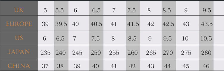 Size: 37, 38, 39, 40, 41, 42, 43, 44, 45, 46