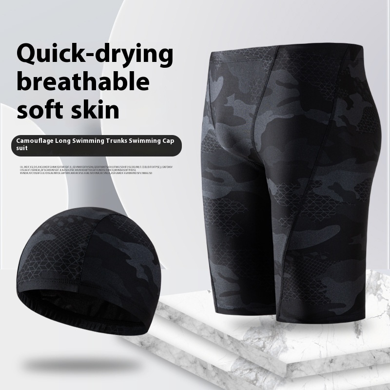 Color: black swimming trunks swimming cap