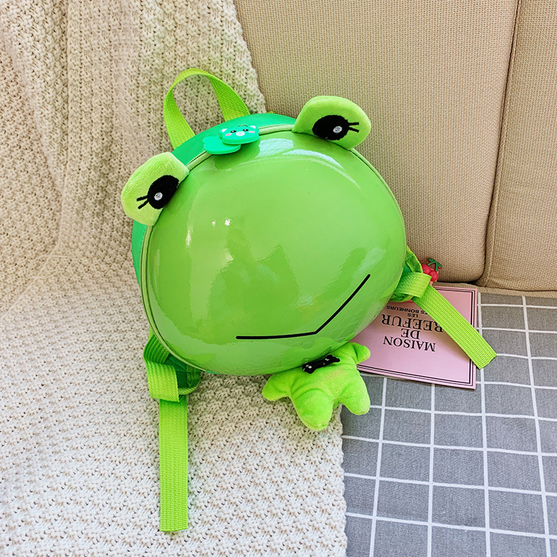 Color: green frog, orange cat, brown bear, pink rabbit, yellow chick, black puppy