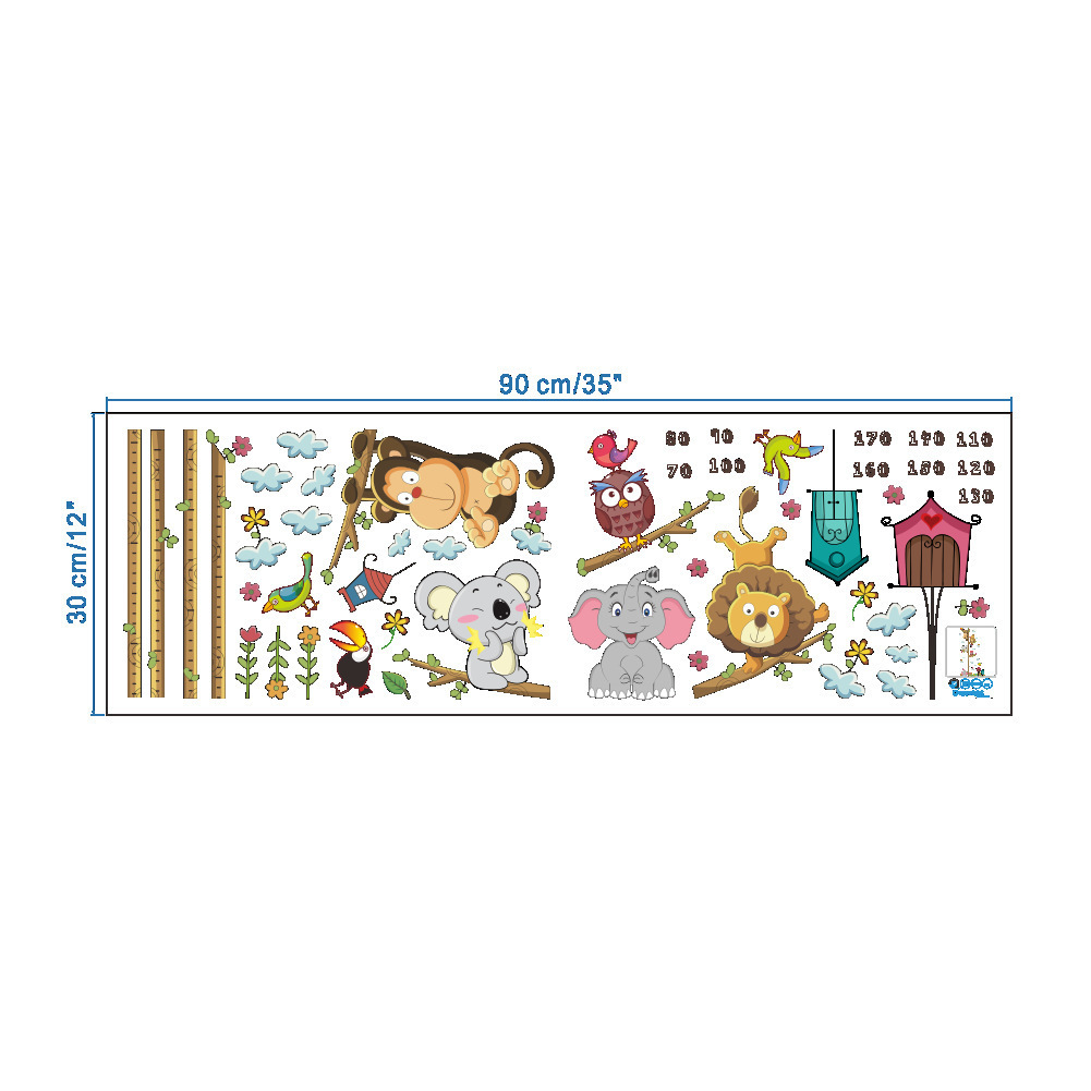 New Cartoon Elephant Lion Zoo Height Stickers Children'S Room Wall Decoration Wall Stickers