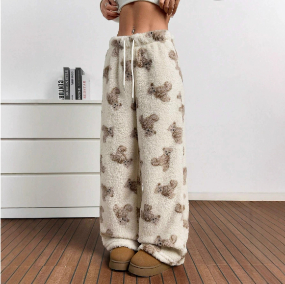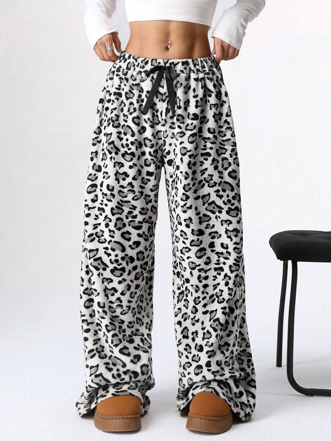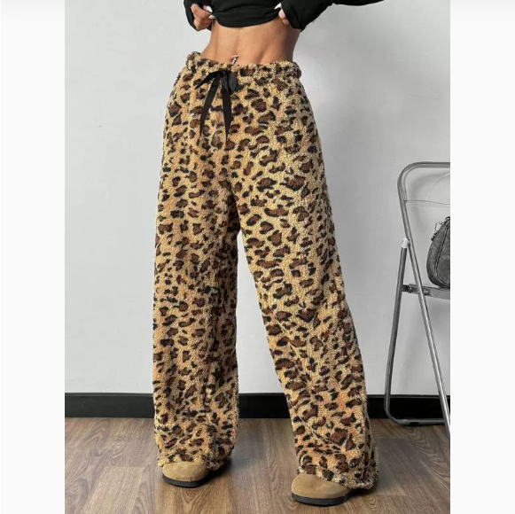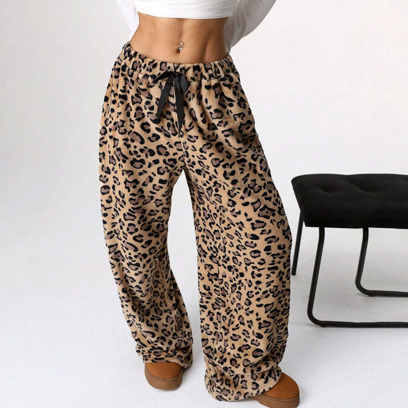 New Casual Leopard Print Lace-up Wide-leg Pants