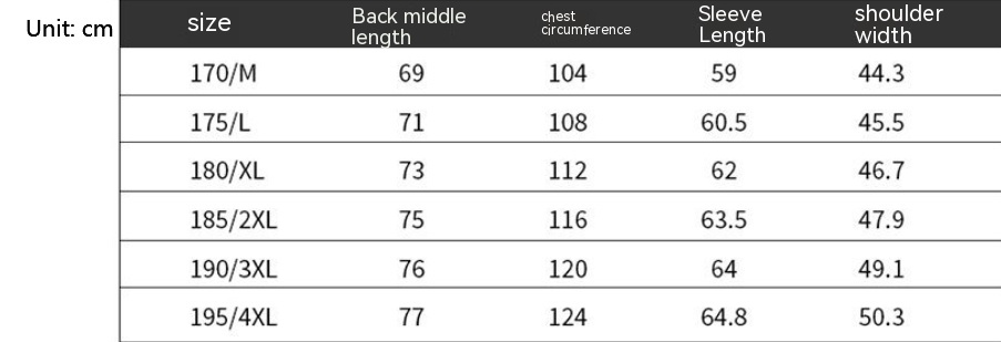 Size: 170,175,180,185,190,195
