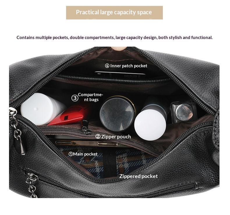 Internal structure: Zippered hidden pocket, phone pocket, ID/card pocket, zippered compartment