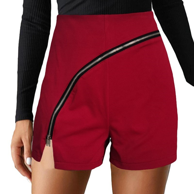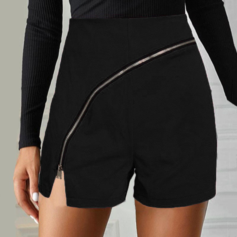New Casual Women's Pure Color Personality Diagonal Zipper Split Casual Shorts