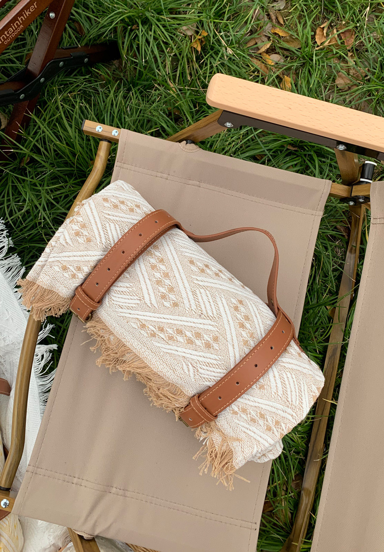 High quality cotton knitted thick fabric, camping blankets, picnic blankets, picnic mats, extremely practical, with strong color impact and checkerboard pattern color matching, greatly satisfying everyone's aesthetic preferences. Single packaging, leather handle design. Combining a sense of luxury with practicality