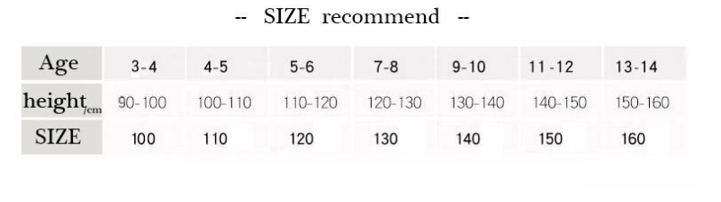Suitable for height: 100 cm, 110 cm, 120 cm, 130 cm, 140 cm, 150 cm, 160 cm
