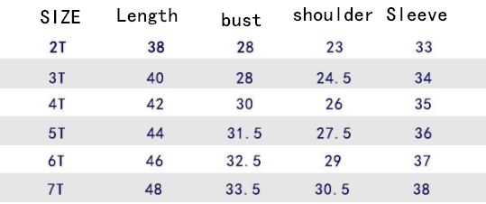 Size: 2T 3T 4T 5T 6T 7T