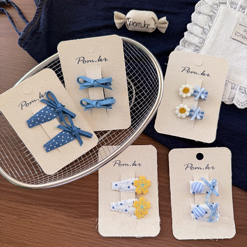 Color: [1] Button bow barrettes,[2] Flower bow barrettes,[3] Cherry Blossom bow barrettes,[4] Denim bow barrettes,[5] dot bow barrettes
