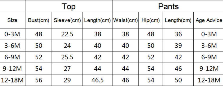 Size: 0-3M, 3-6M, 6-9M, 9-12M, 12-18M