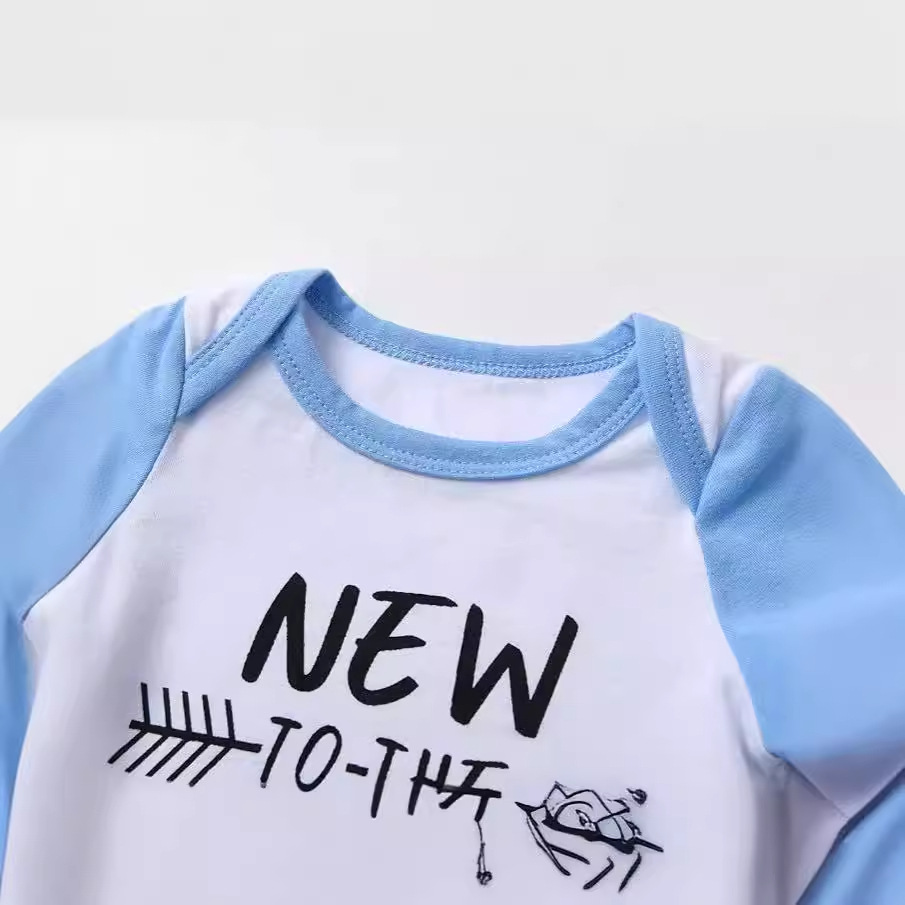 New Children's Summer Clothing Letter Printing Blue And White
