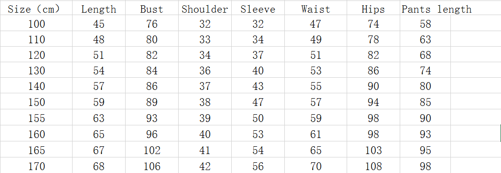 Suitable for height: 100cm for size 10, 110cm for size 12, 120cm for size 14, 130cm for size 16, 140cm for size 18, 150cm for size 20, 155cm for size 22, 160cm for size L, 165cm for size XL, 170cm for size XXL
