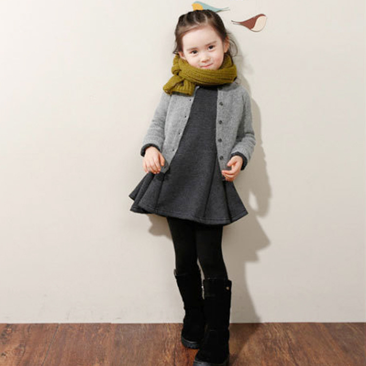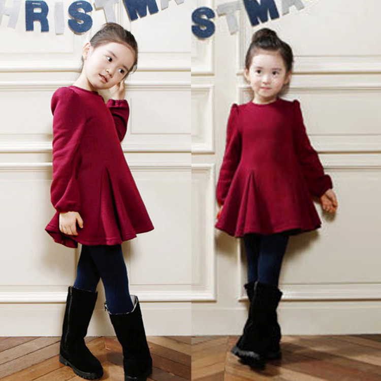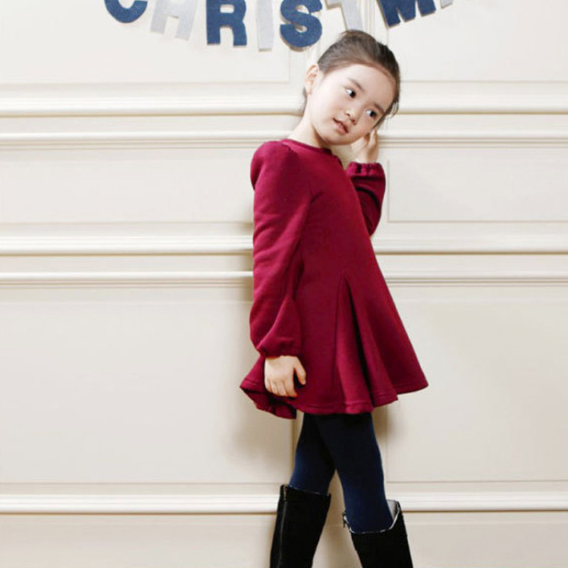 New children's wear girls fall winter thick cotton not down velvet dress fashion ruffled skirt