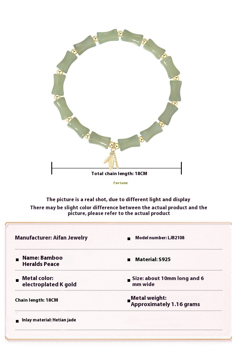 Style: Green B2108bamboo bracelet E26 (about 18cm), Green P14073bamboo necklace F30(45cm, random jade color)
