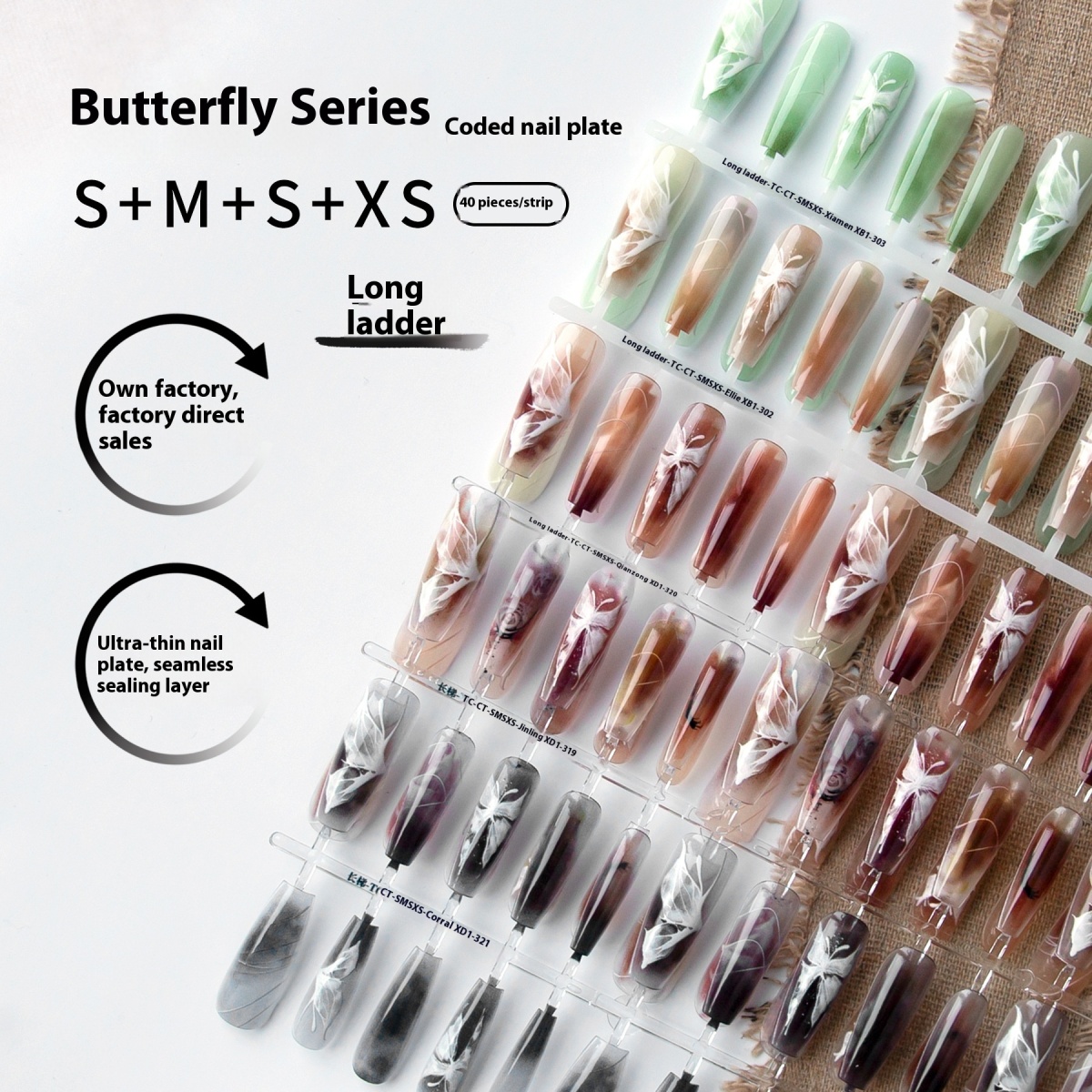 Color: WA XD1-319 (long ladder transparent nail tip), Thousand cotton XD1-320 (long ladder transparent nail tip),colar XD1-321 (long ladder transparent nail tip), Ali XB1-302 (long ladder-transparent nail tip), west Asia XB1-303 (long ladder-transparent white nail tip)