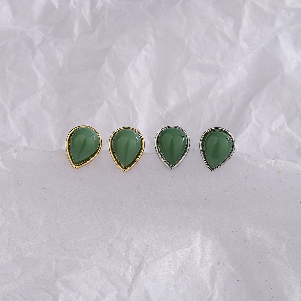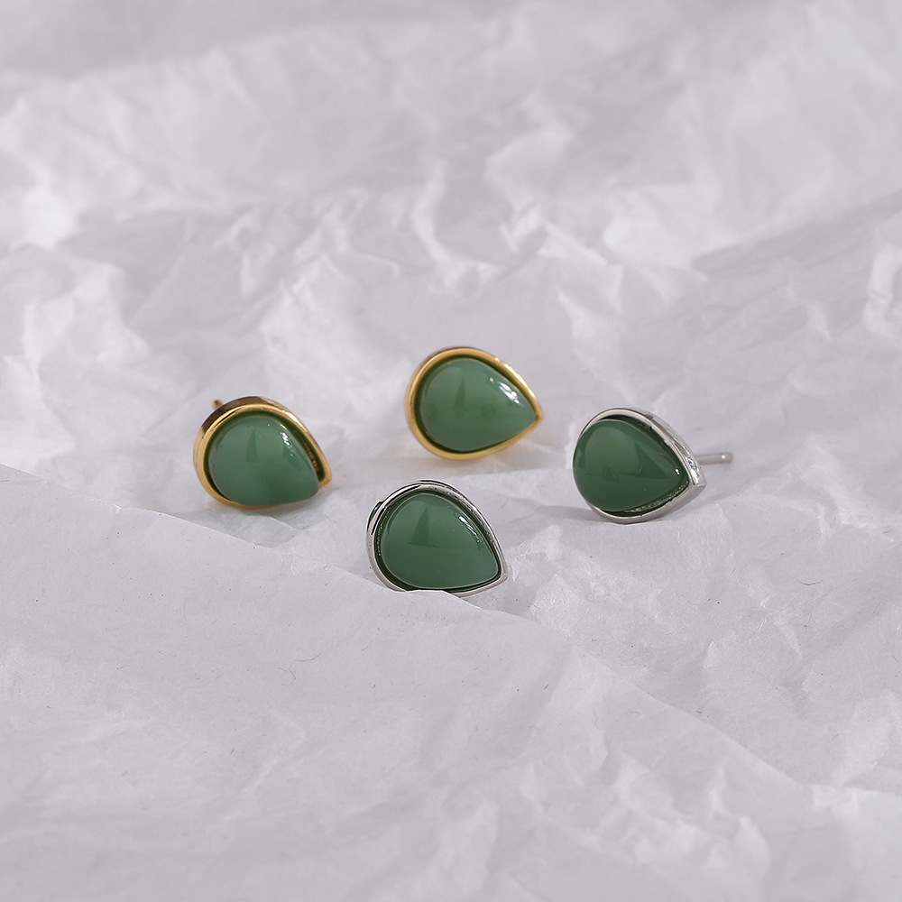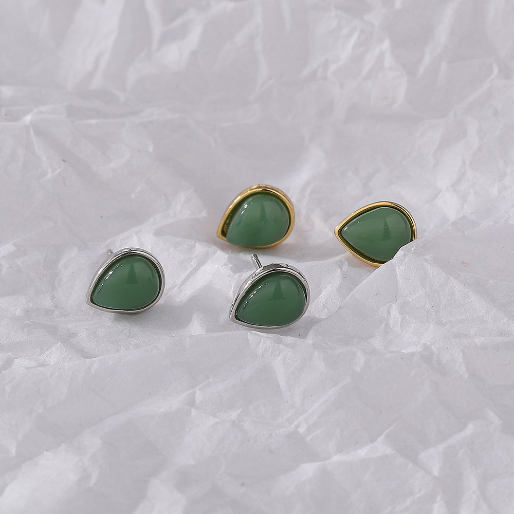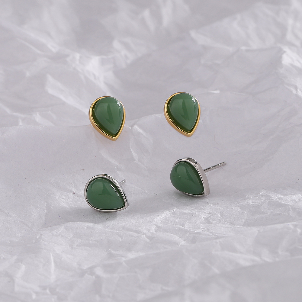 Color: white gold color Hetian jade water drop ear studs, gold Hetian jade water drop ear studs