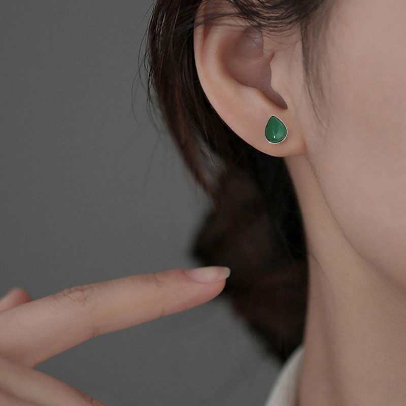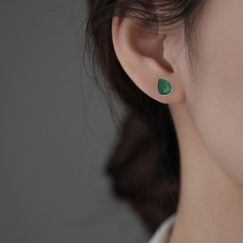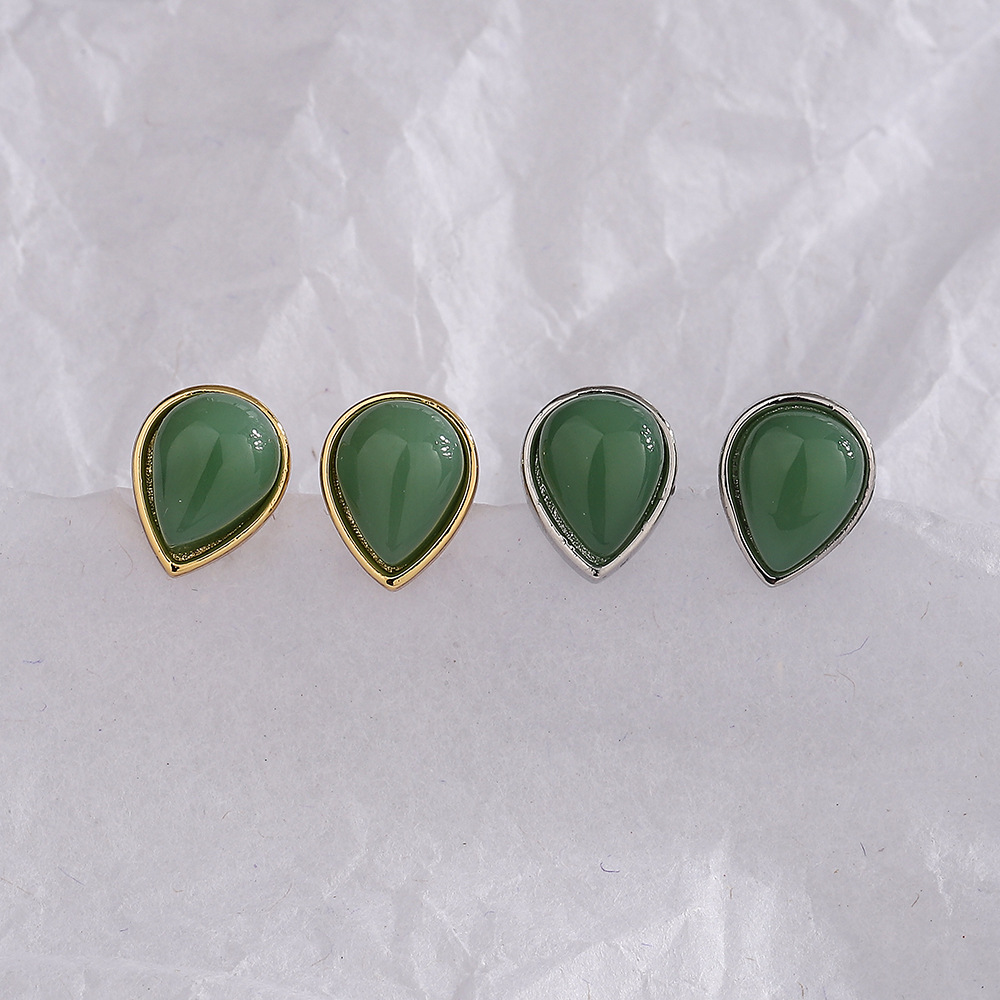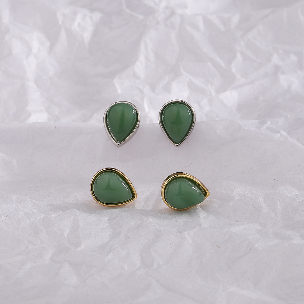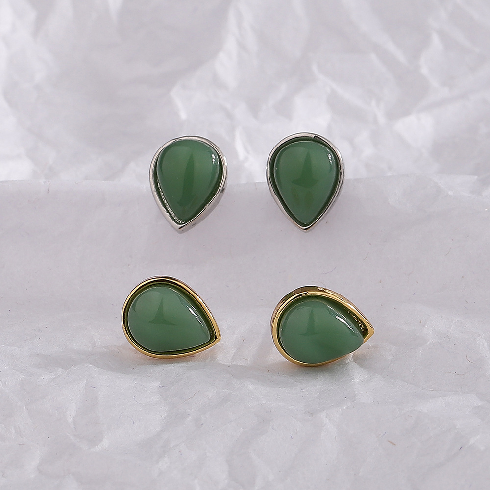 Color: white gold color Hetian jade water drop ear studs, gold Hetian jade water drop ear studs