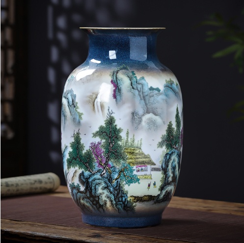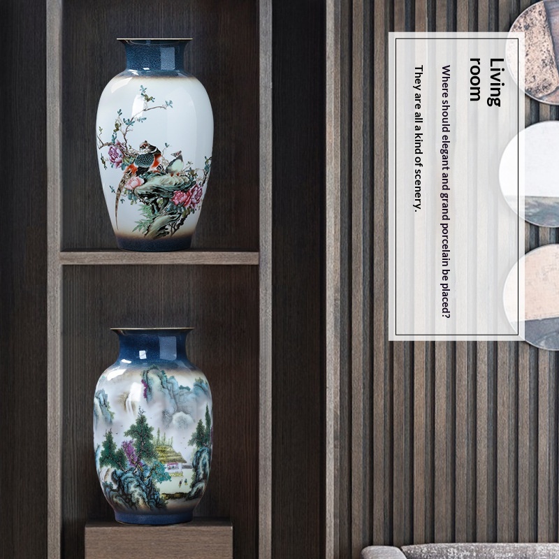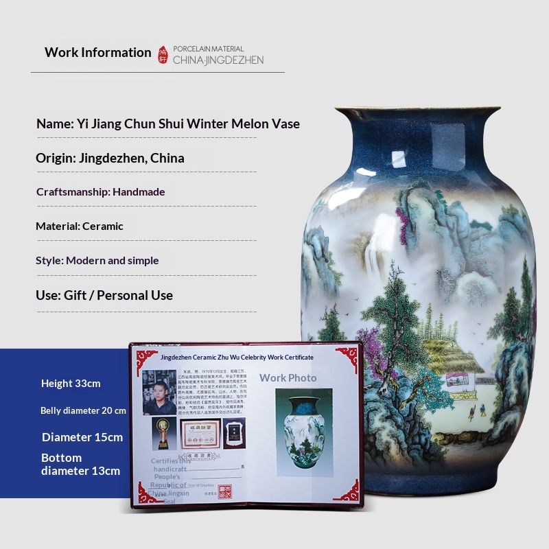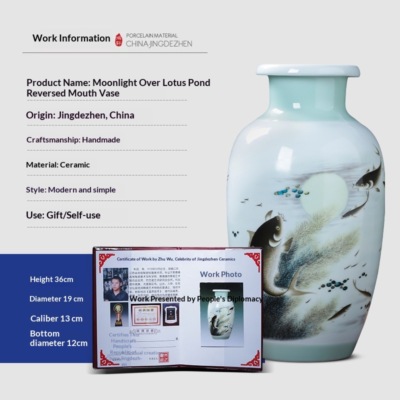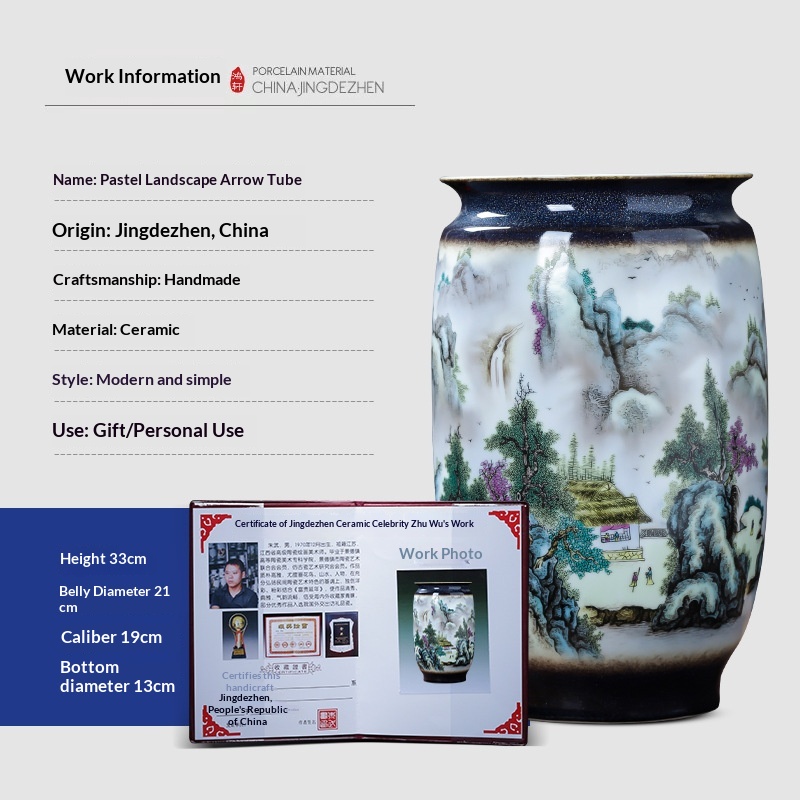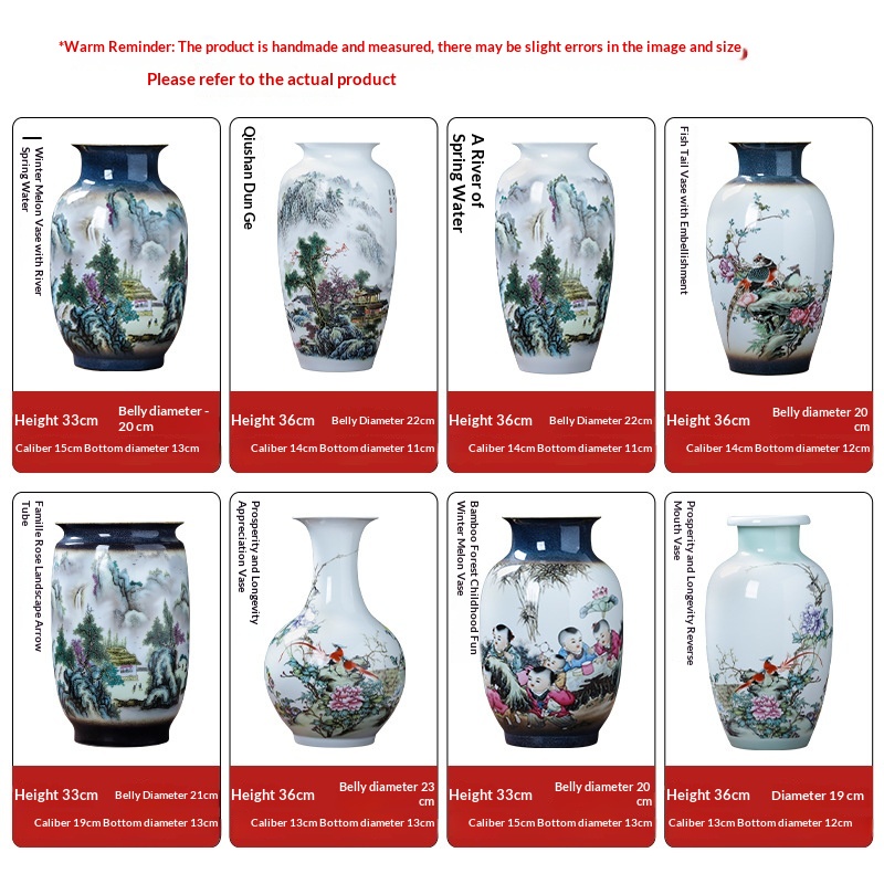 Dimensions: Zhu Wu “Spring Waters on the River” Winter Melon Vase + Free Rotating Base; Zhu Wu Pastel Landscape Arrow-Shaped Vase + Free Rotating Base; “Double Blessings of Fortune and Longevity” Display Vase—Zhu Wu + Free Rotating Base; Zhu Wu “Adding Flowers to Brocade” Fish-Tail Vase + Free Rotating Base; Zhu Wu “Moonlit Lotus Pond” Everted-Rim Vase + Free Rotating Base