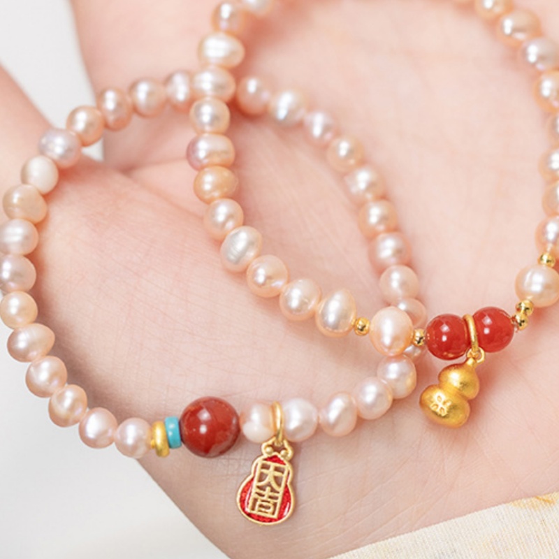 New Chinese Style Red Agate Natural Freshwater Pearl Bead Bracelet