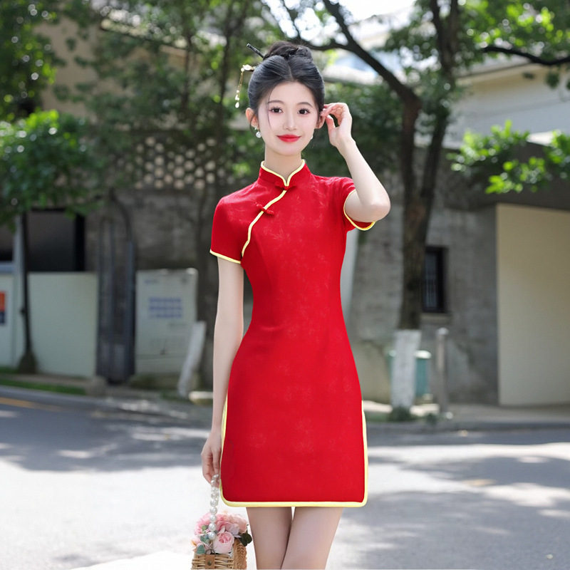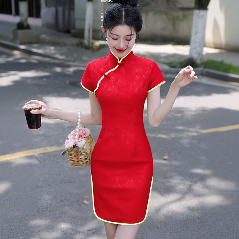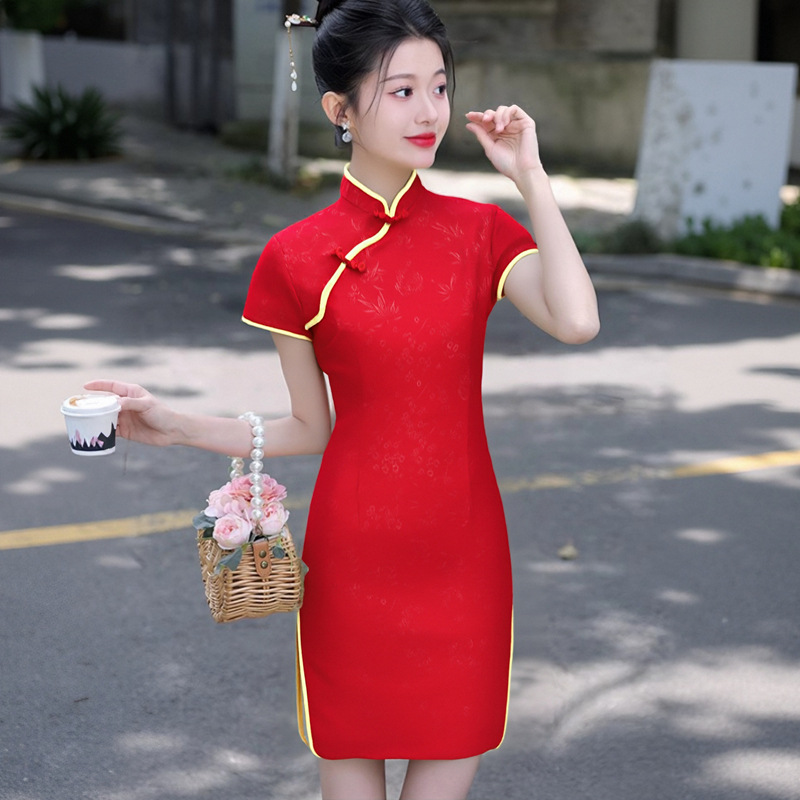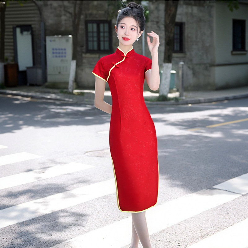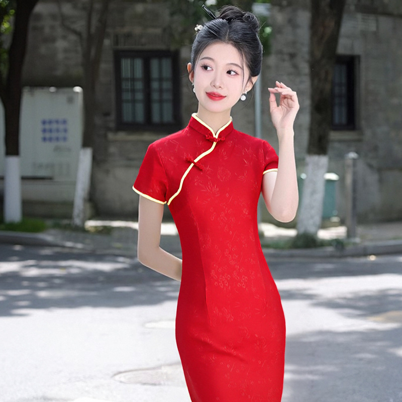 Color: Medium Cheongsam [Embossed]—Bright Red