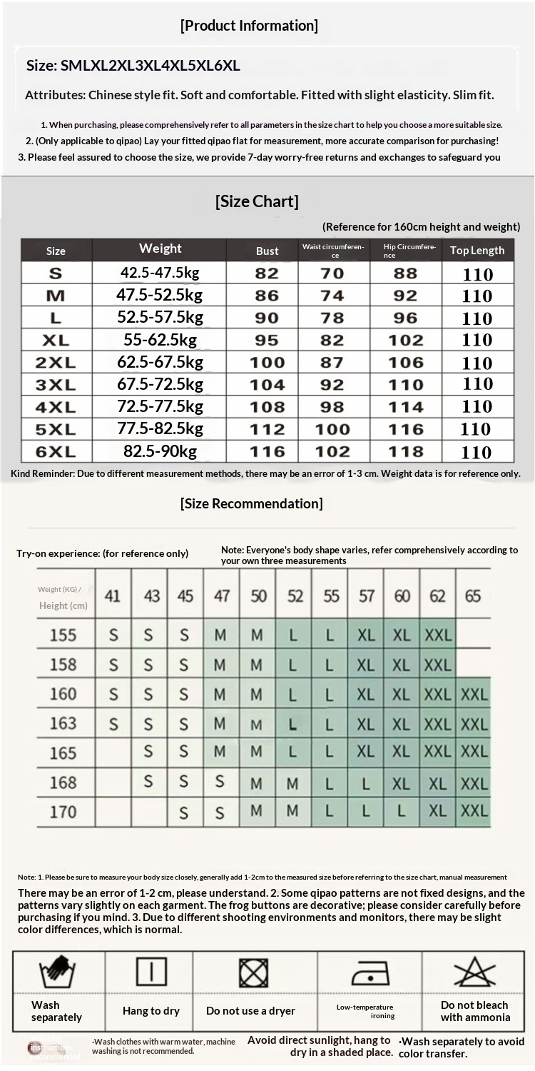 Sizes: S (fits 85–95 jin), M (fits 95–110 jin), L (fits 105–115 jin), XL (fits 110–125 jin), 2XL (fits 125–135 jin), 3XL (fits 135–145 jin), 4XL (fits 145–155 jin), 5XL (fits 155–165 jin), 6XL (fits 165–180 jin)