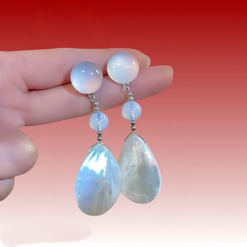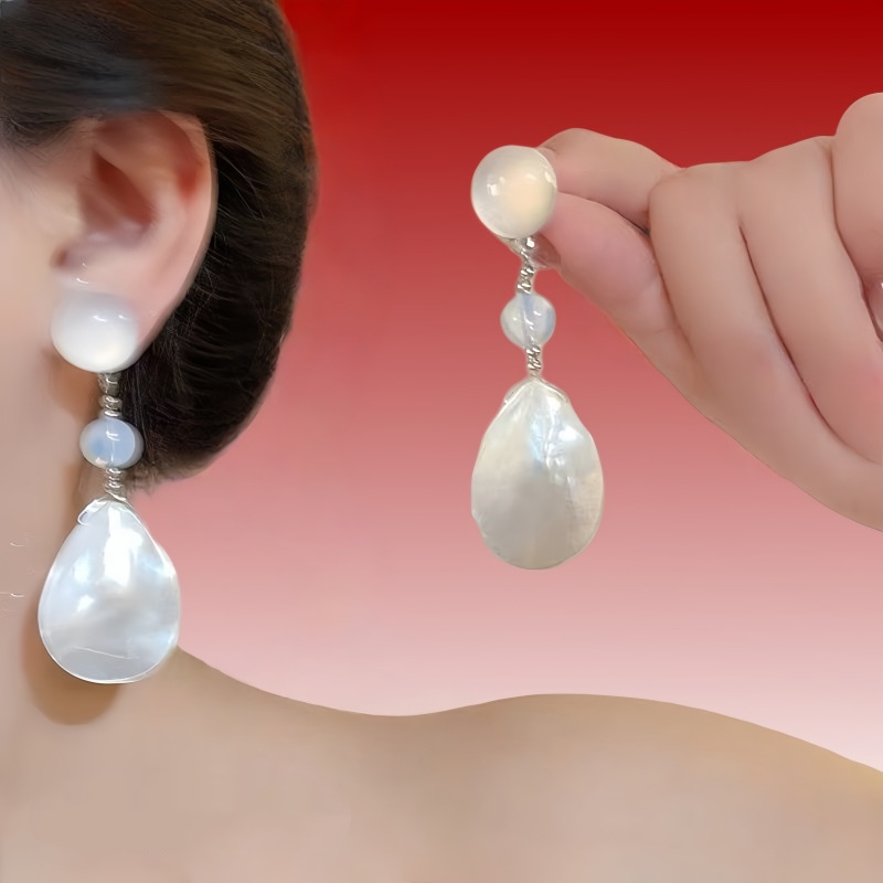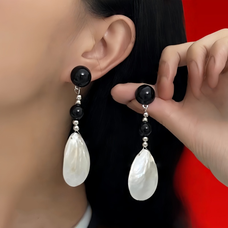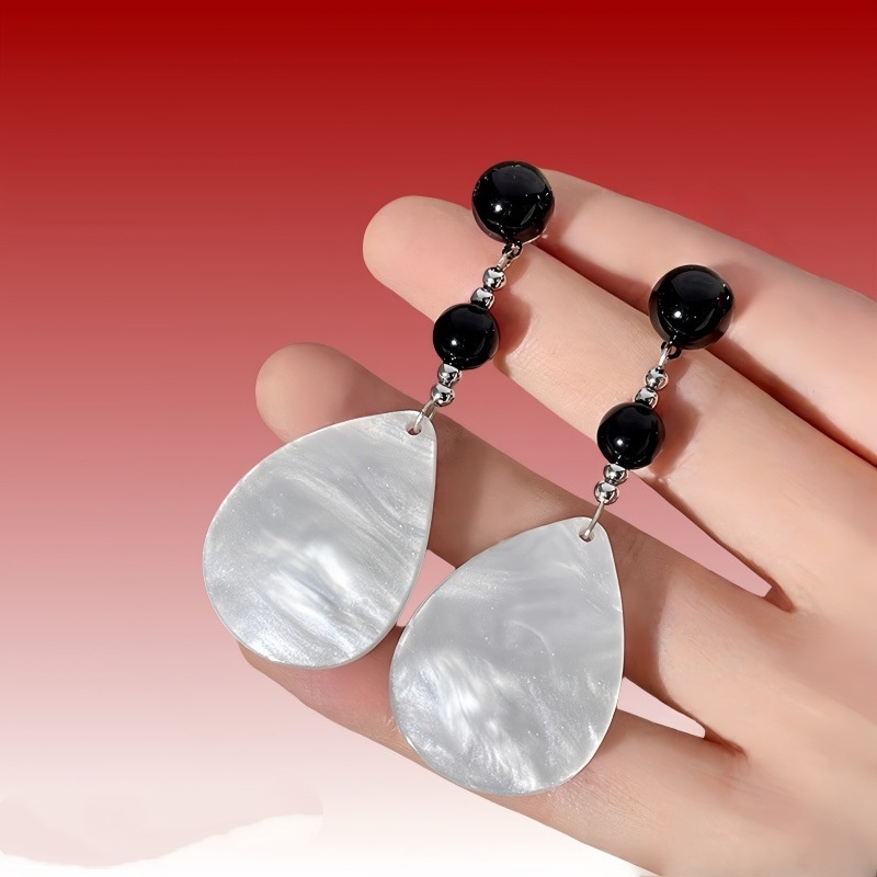 Color: Black Water Drop Shell tassel stud earrings 4316, white water drops shell tassel stud earrings 4315
