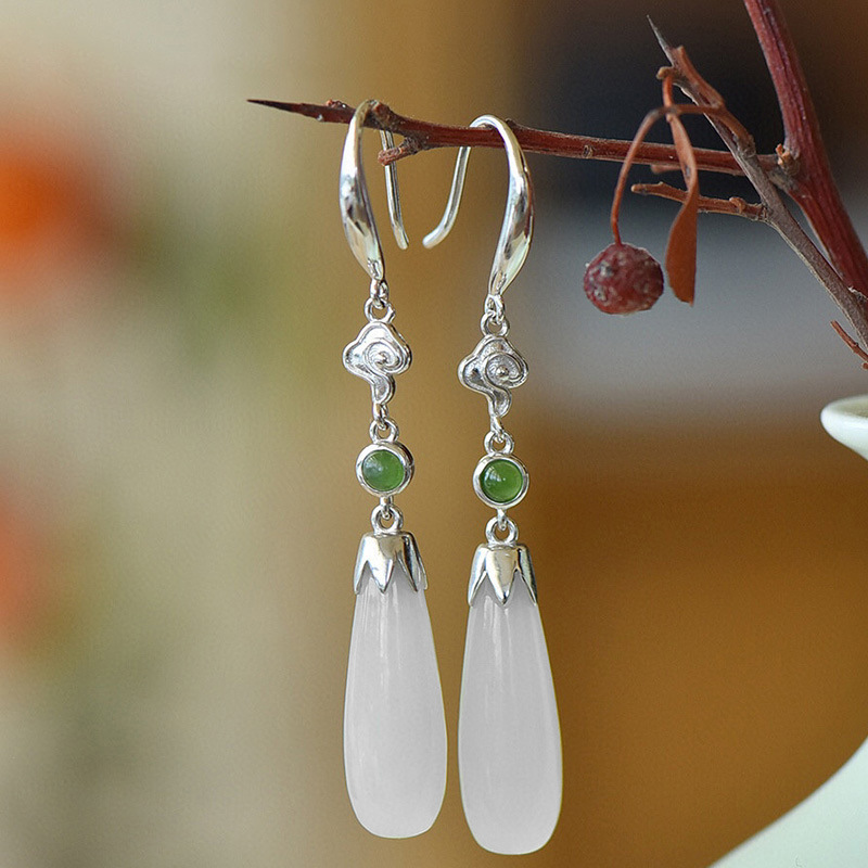 Color: water drop Hetian jade earrings (copper plated gold), water drop Hetian jade earrings (copper plated platinum)