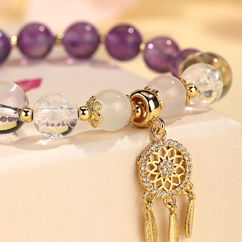 Color: Strawberry quartz tassel bracelet, pink crystal white crystal white agate tassel bracelet, aquamarine tassel bracelet, green strawberry quartz tassel bracelet, lemon Crystal tassel bracelet, Sunstone white crystal tassel bracelet, amethyst tassel bracelet