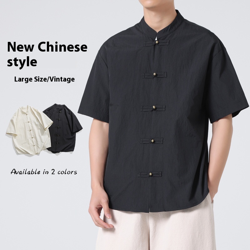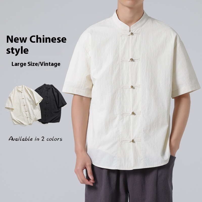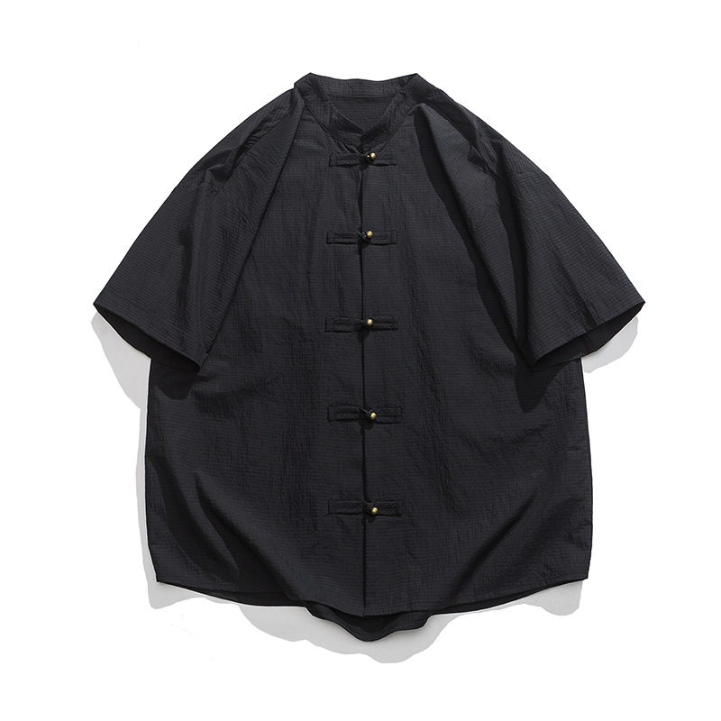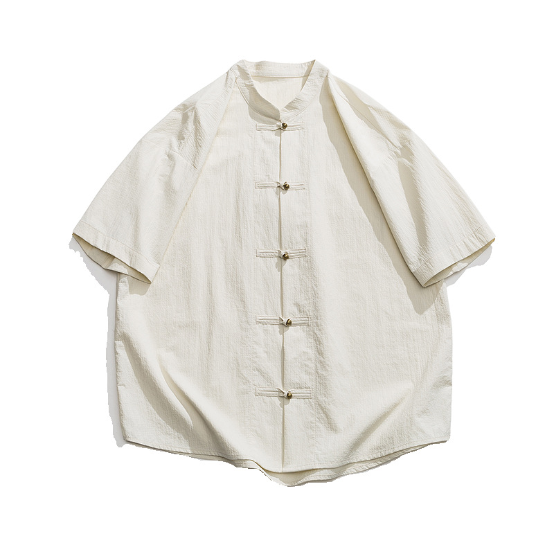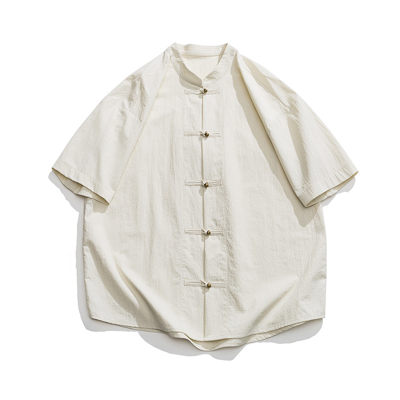 New Chinese Style Worn Looking Washed-out Stand Collar Chinese Style Shirt