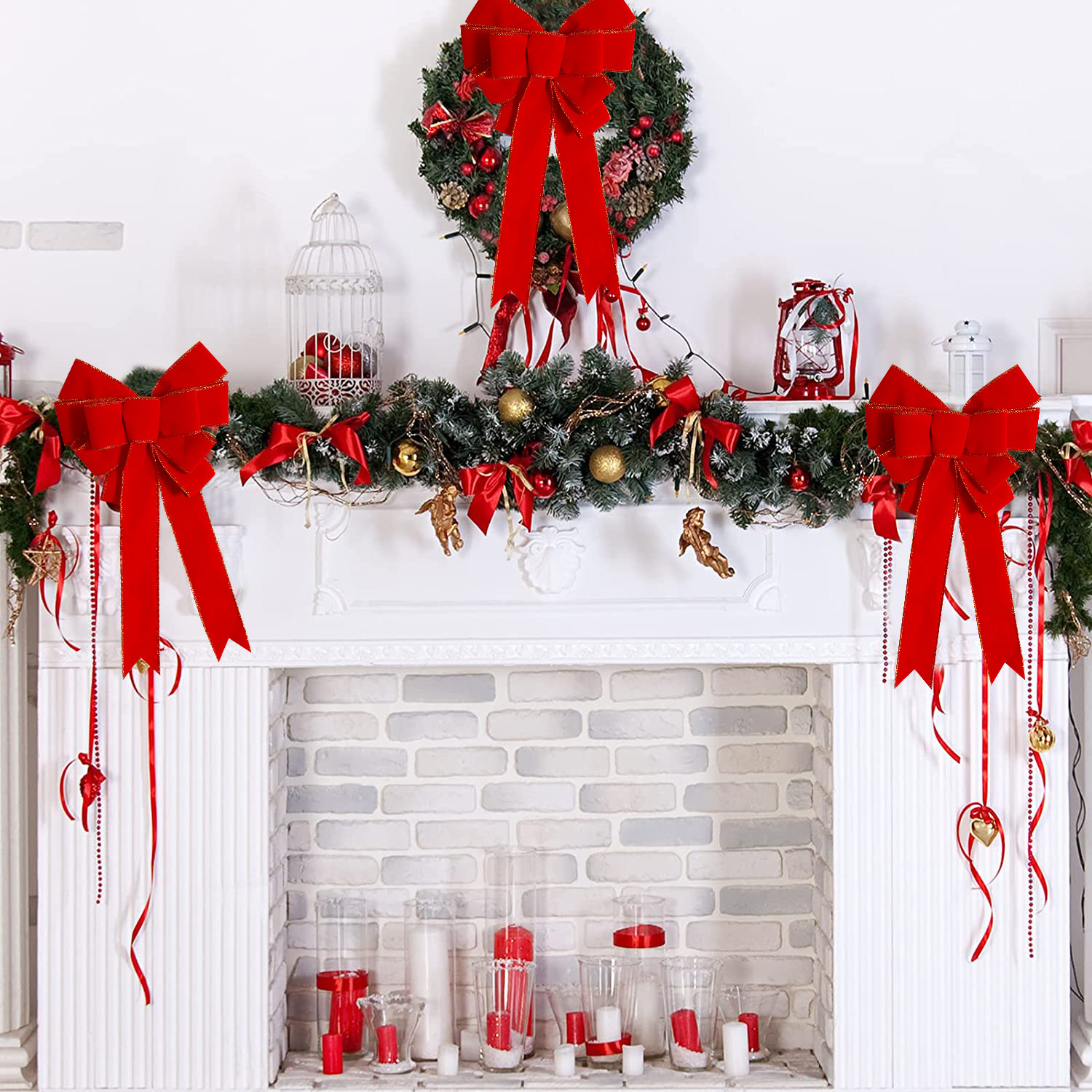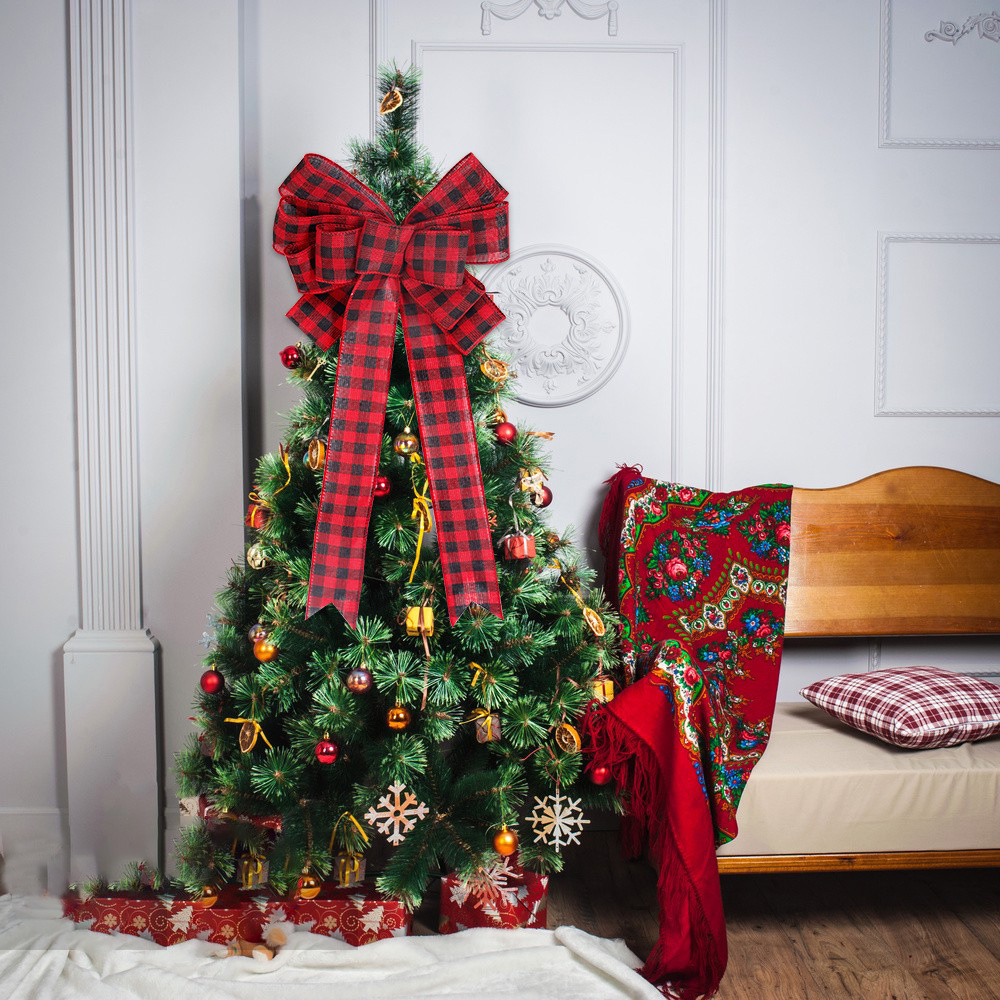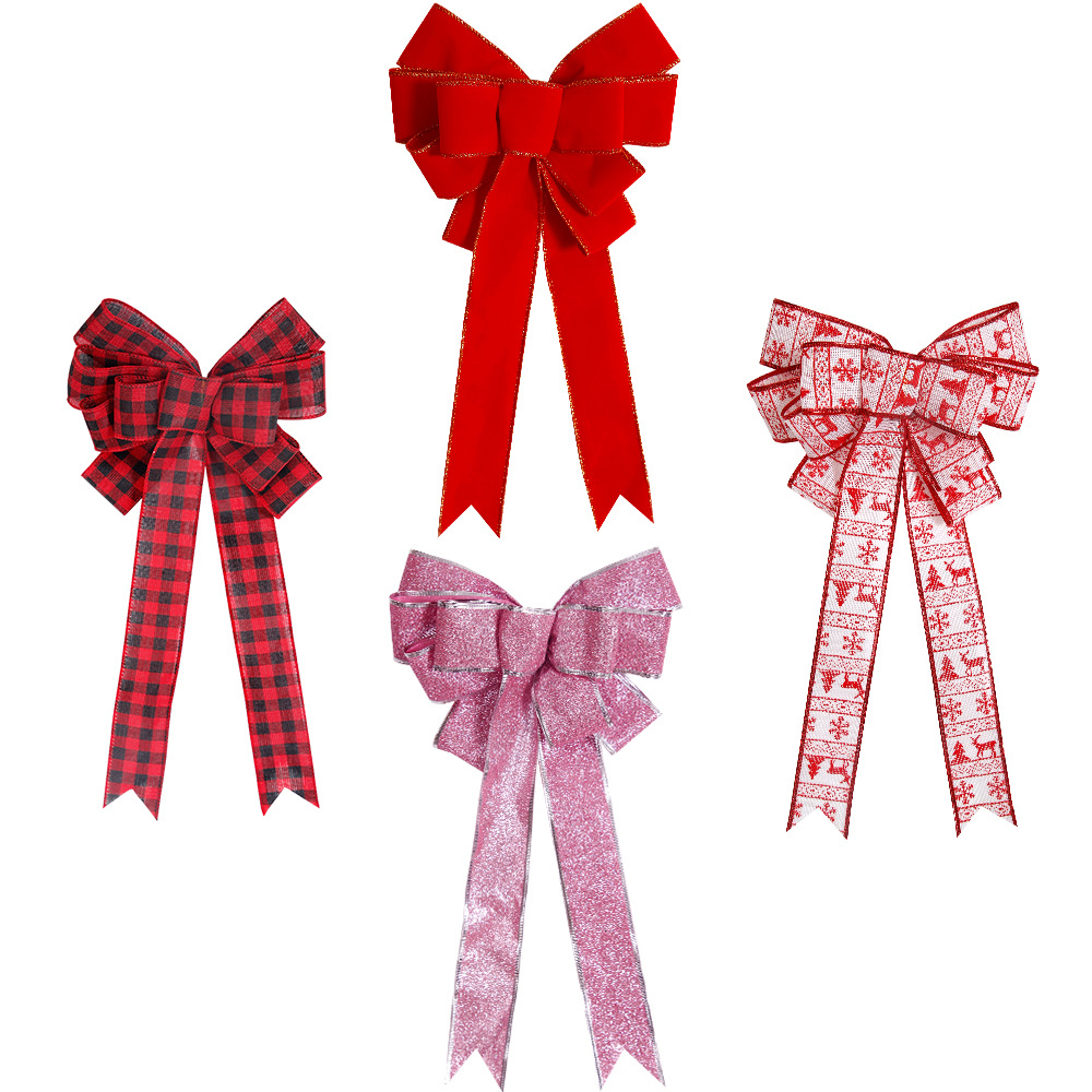 Color: red and black plaid bow, red flocking bow, glitter powder bow, Elk Christmas tree bow