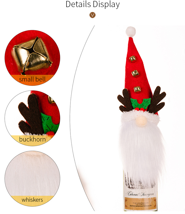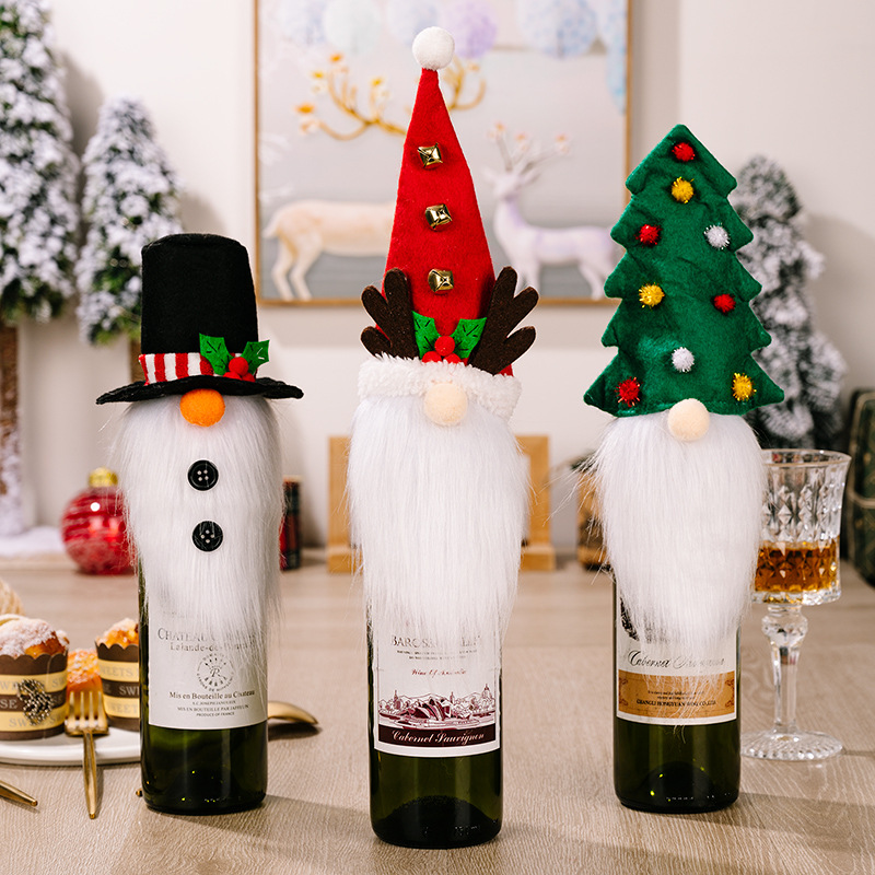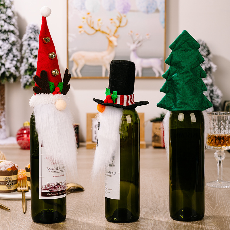 Specifications: antler red hat white beard wine set, black top hat white beard wine set, Christmas tree hat white beard wine set