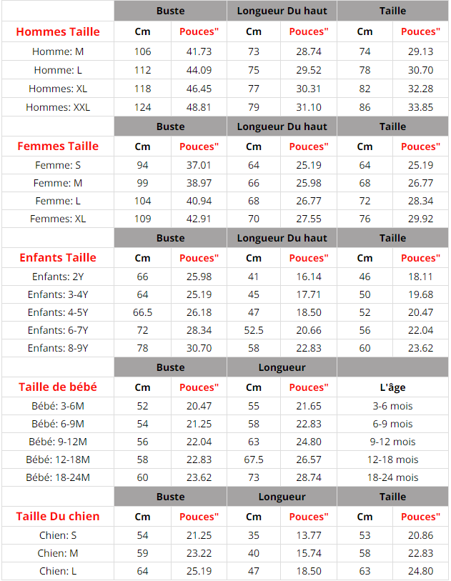 Size: KIDS 2Y, KIDS 3-4Y, KIDS 4-5Y, KIDS 6-7Y, KIDS 8-9Y, WOMEN S, WOMEN M, WOMEN L, WOMEN XL, MEN M, MEN L, MEN XL, MEN XXL, Baby 3-6M, Baby 6-9M, Baby 9-12M, Baby 12-18M, Baby 18-24M, Dog: S, Dog: M, Dog: L