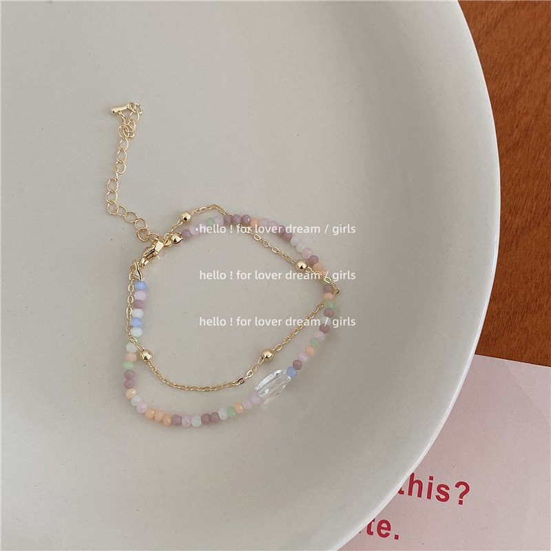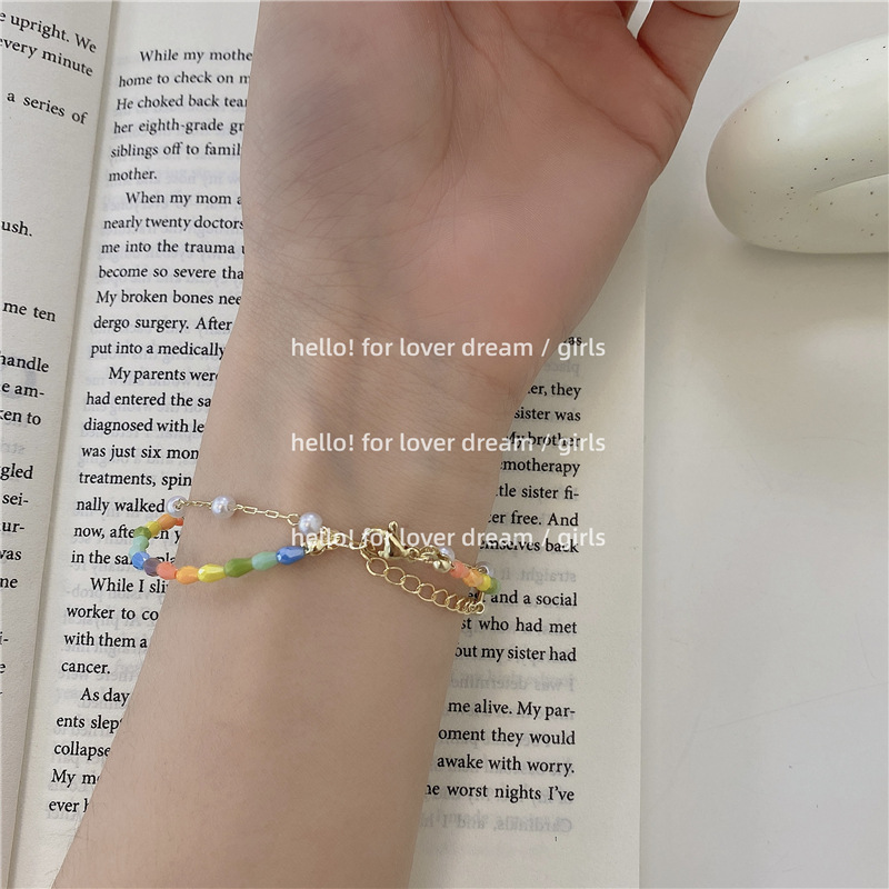 Color: Love beaded bracelet, colorful beaded double-layer bracelet, white beaded bracelet