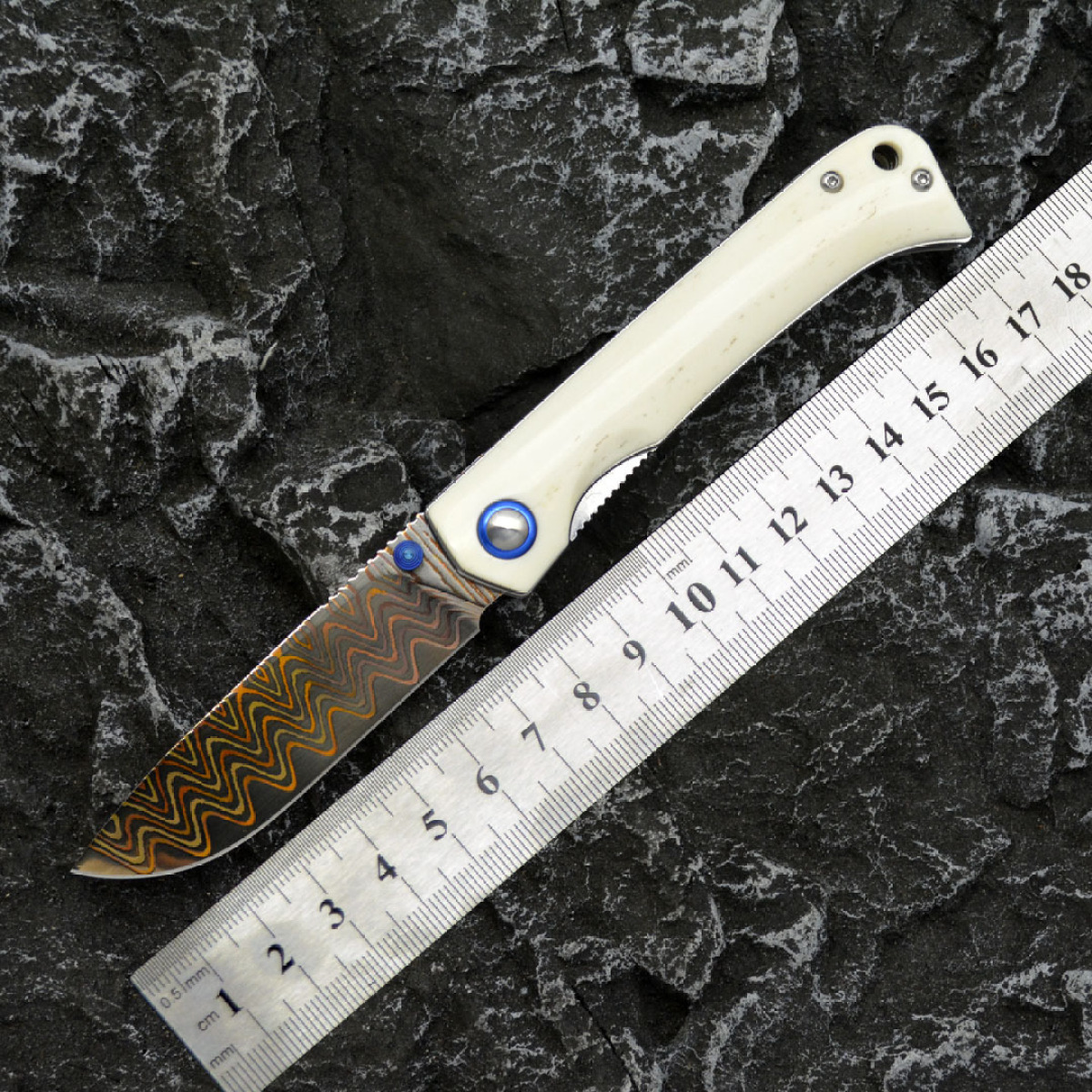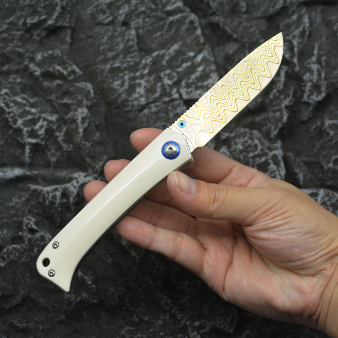 New Copper Damascus Steel Folding Knife Camping Tool