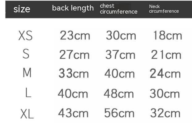 Size: XS (clothes weight 44g),S (clothes weight 56. 7g),M (clothes weight 60g),L (clothes weight 86. 3G),XL (clothing weight 104g)