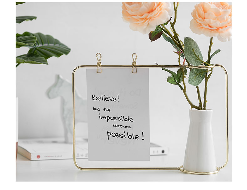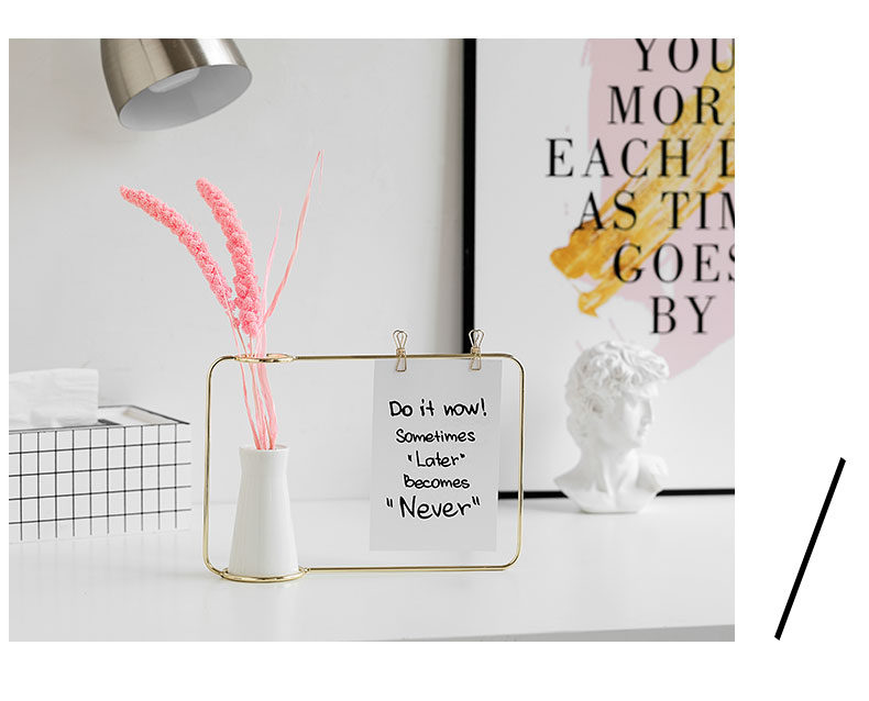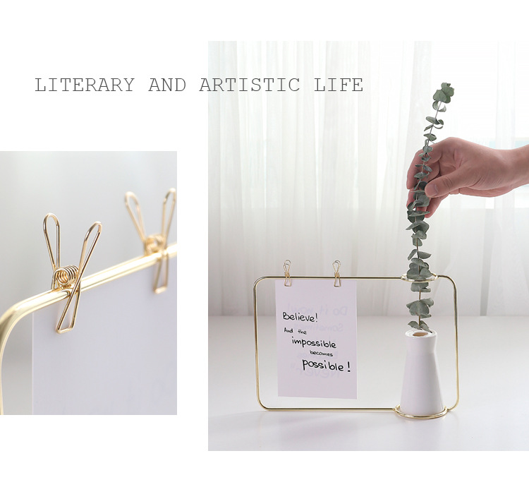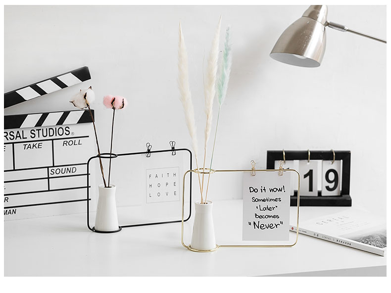 Gold or black cermet vase with metal frame. In addition, you can use two brackets to pin small messages.