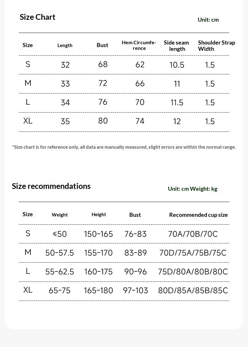 Note: 1. Asian sizes are 1 to 2 sizes smaller than European and American people. Choose the larger size if your size between two sizes. Please allow 2-3cm differences due to manual measurement. 2. Please check the size chart carefully before you buy the item, if you don't know how to choose size, please contact our customer service. 3.As you know, the different computers display colors differently, the color of the actual item may vary slightly from the following images.