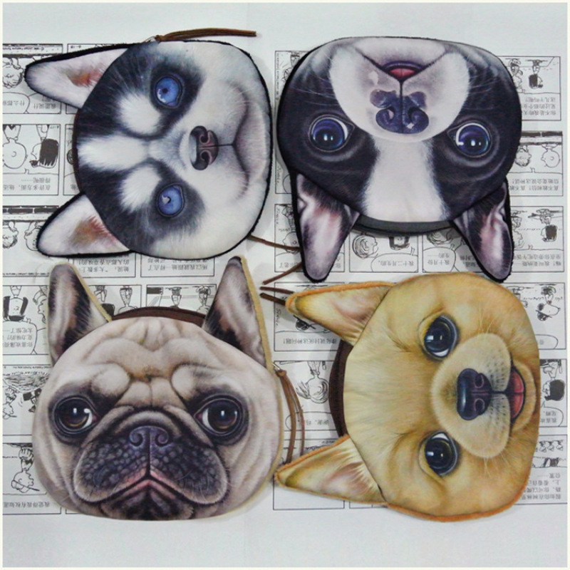 New Cute Cat Dog Face Zipper Case Coin Purse Female Wallet Purses Makeup Buggy Bag