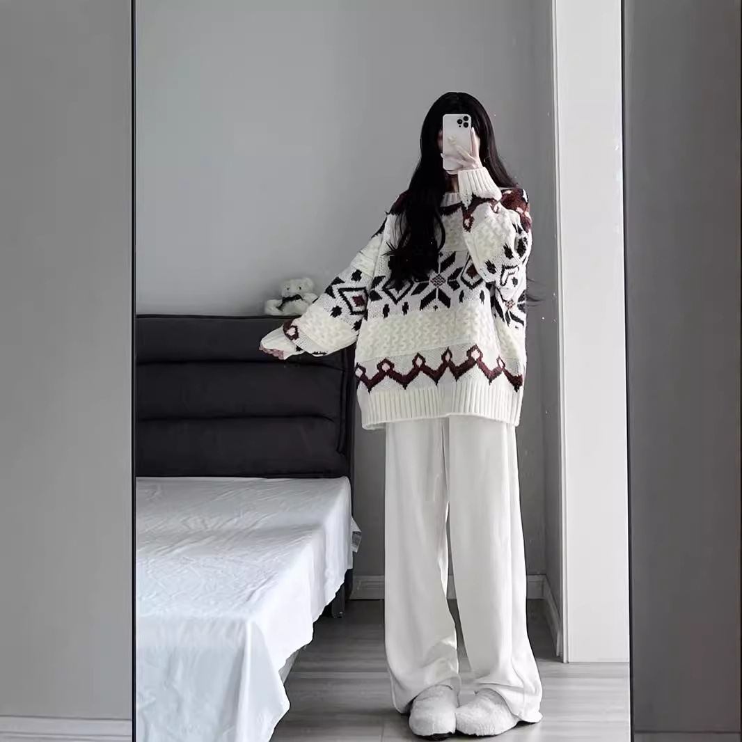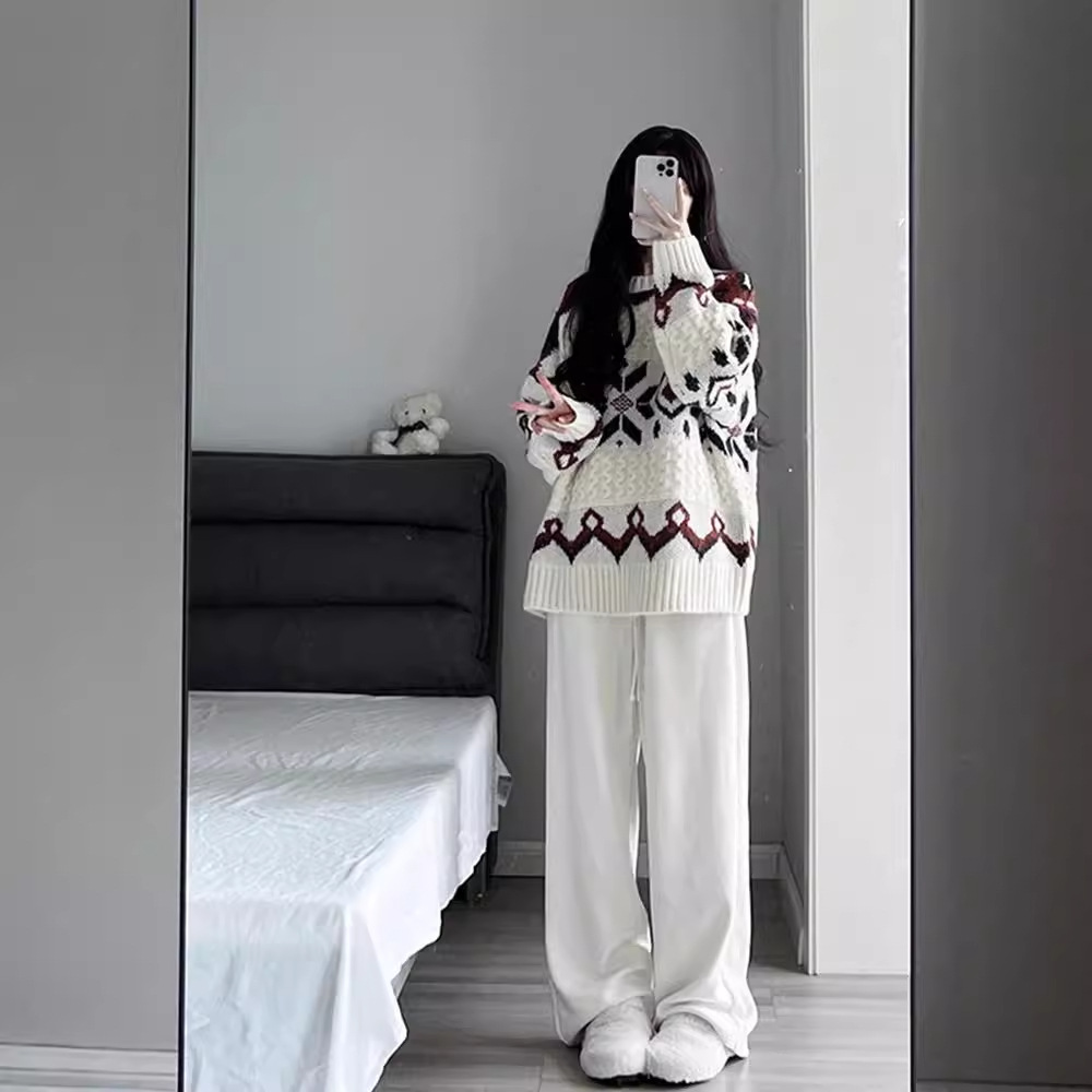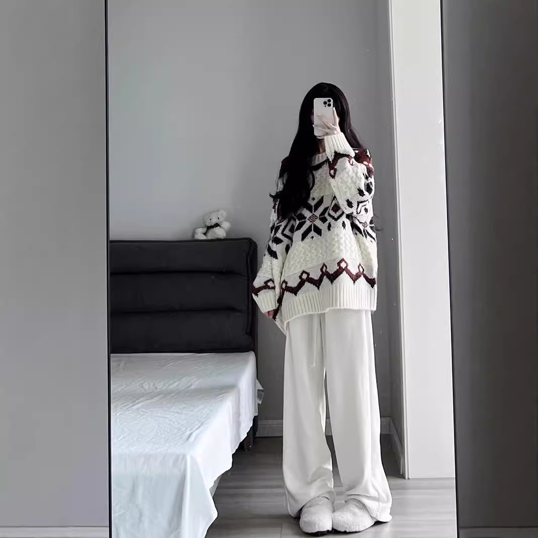 Color classification: single sweater, white casual pants, single sweater white casual pants