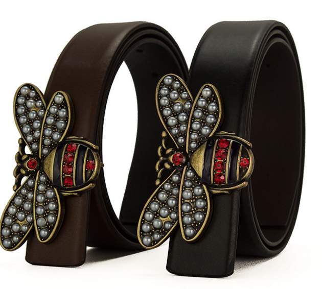 New Design Women's New Fashion Leather Belt With Metal Bee Buckle