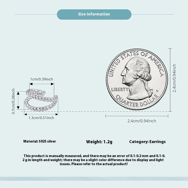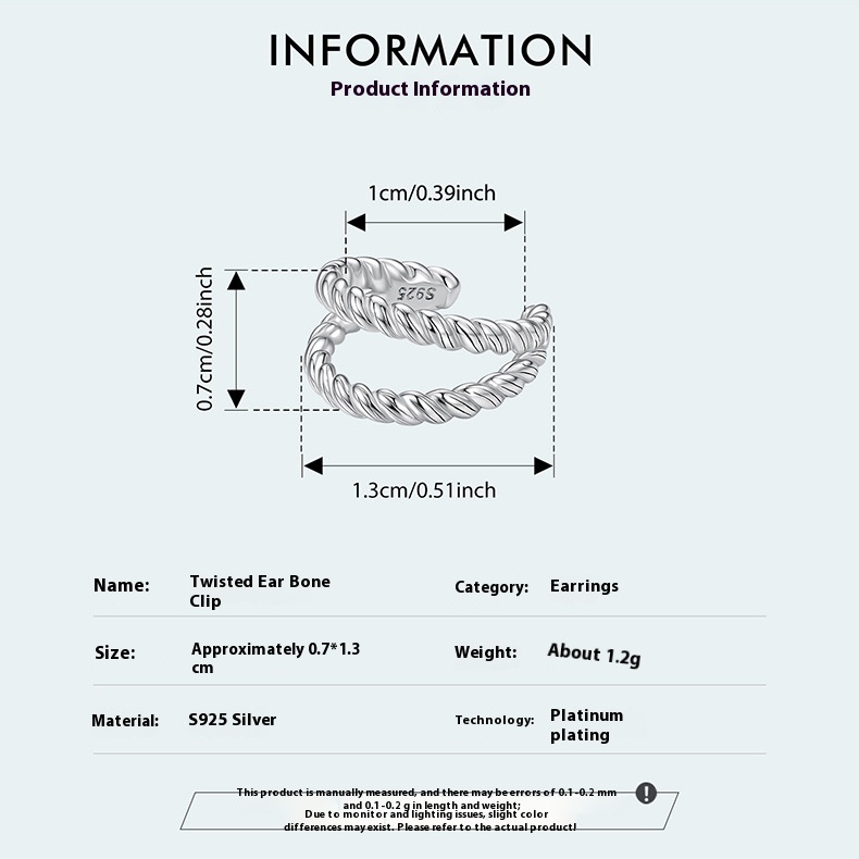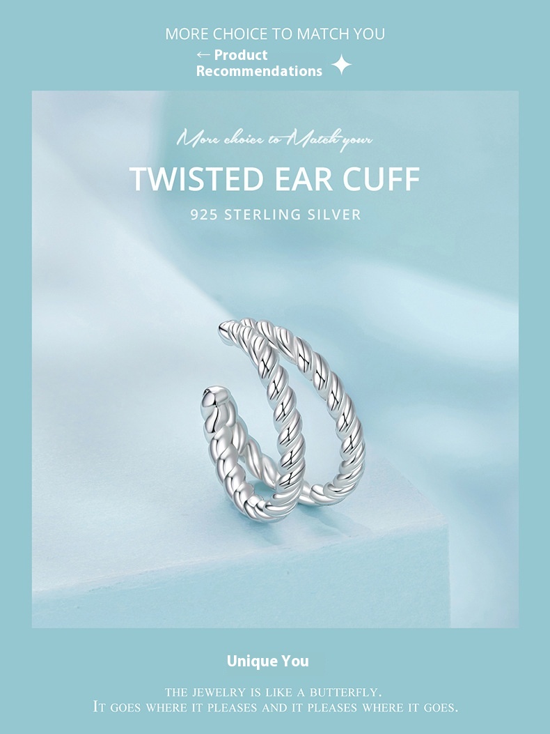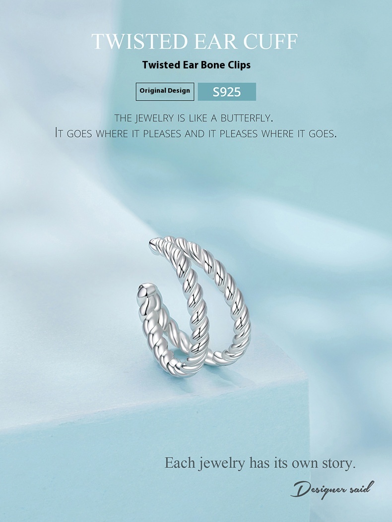 New Double-layer Twist Simple High-grade S925 Sterling Silver Ear Clip Earrings