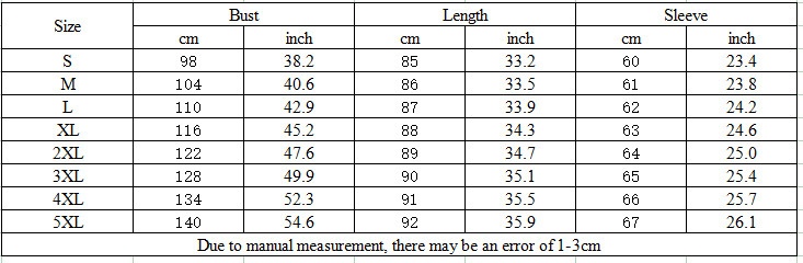 Sizes: S, M, L, XL, 2XL, 3XL, 4XL, 5XL