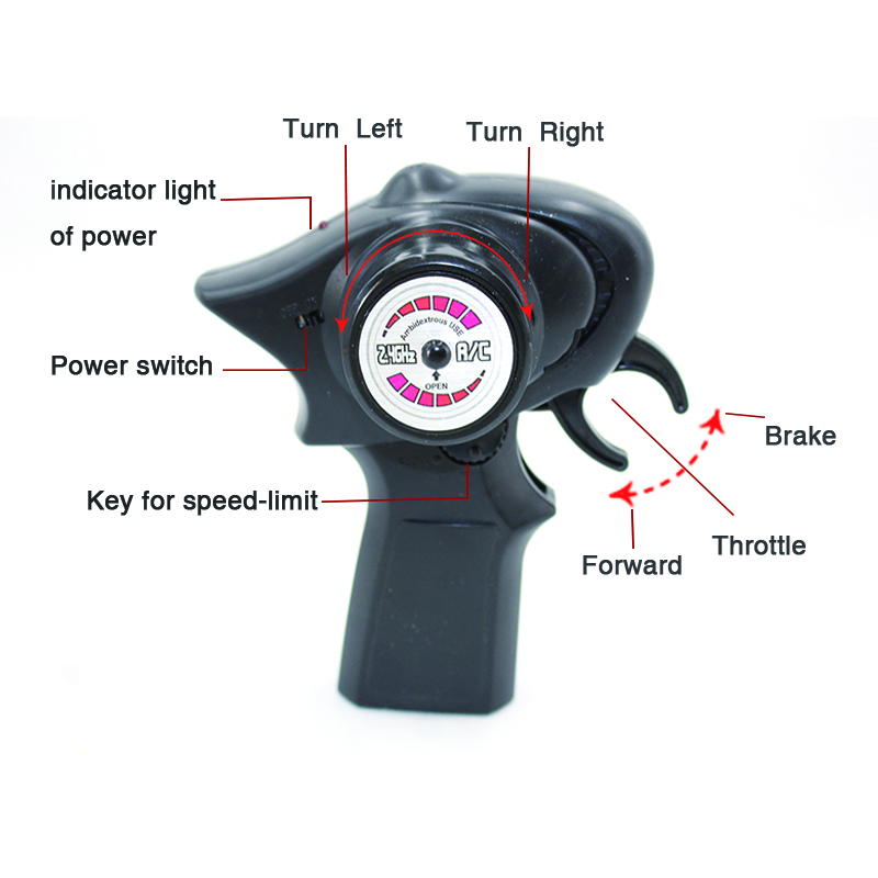 Product features: Advance (Note: Forward is full-scale remote control), turn left, turn right