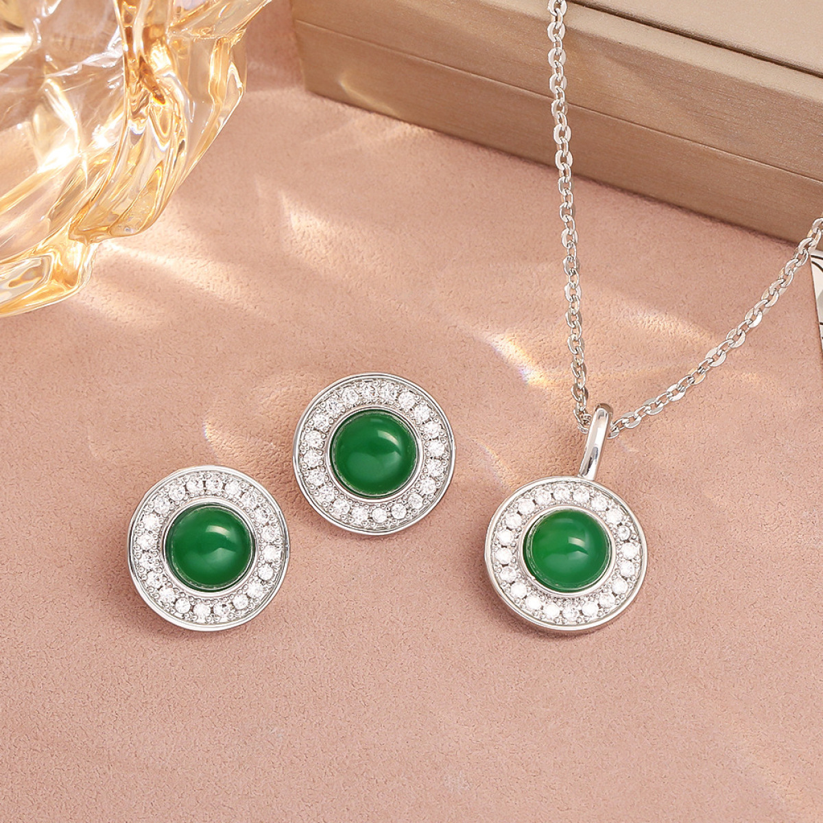 Color: Emerald zircon earrings (thick gold color retention), Emerald zircon necklace (thick gold color retention)