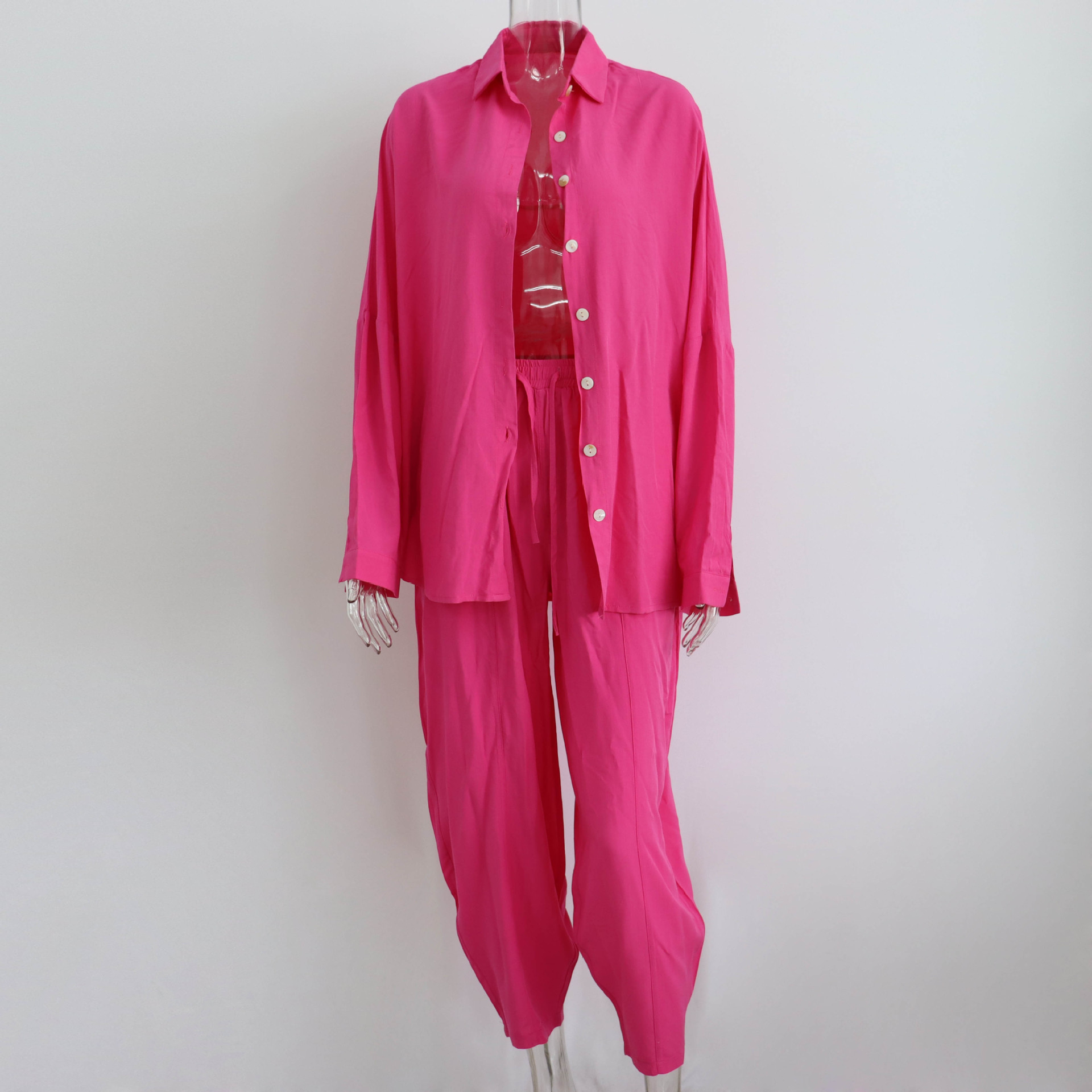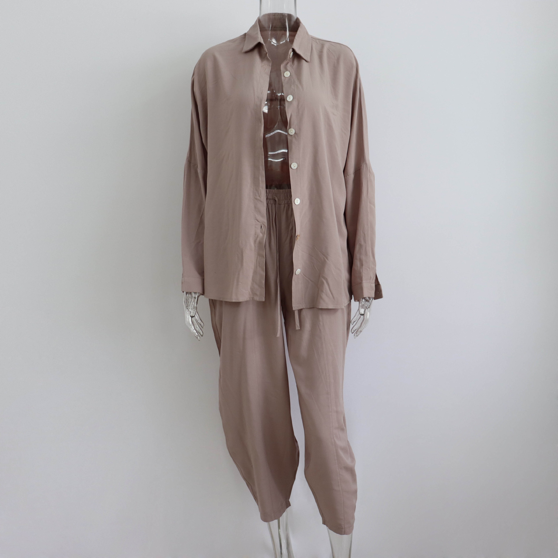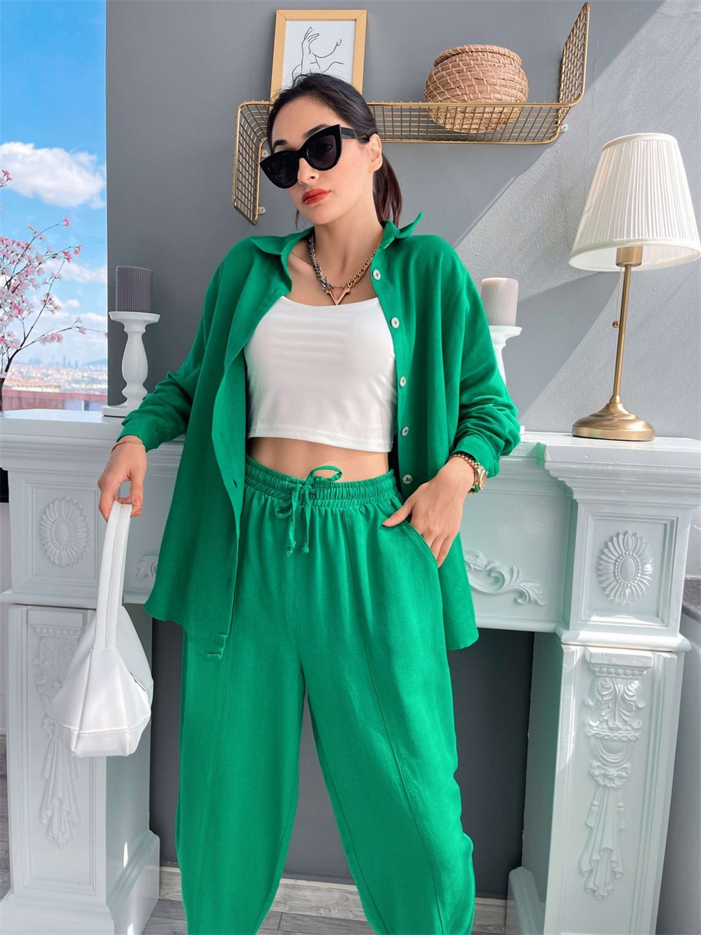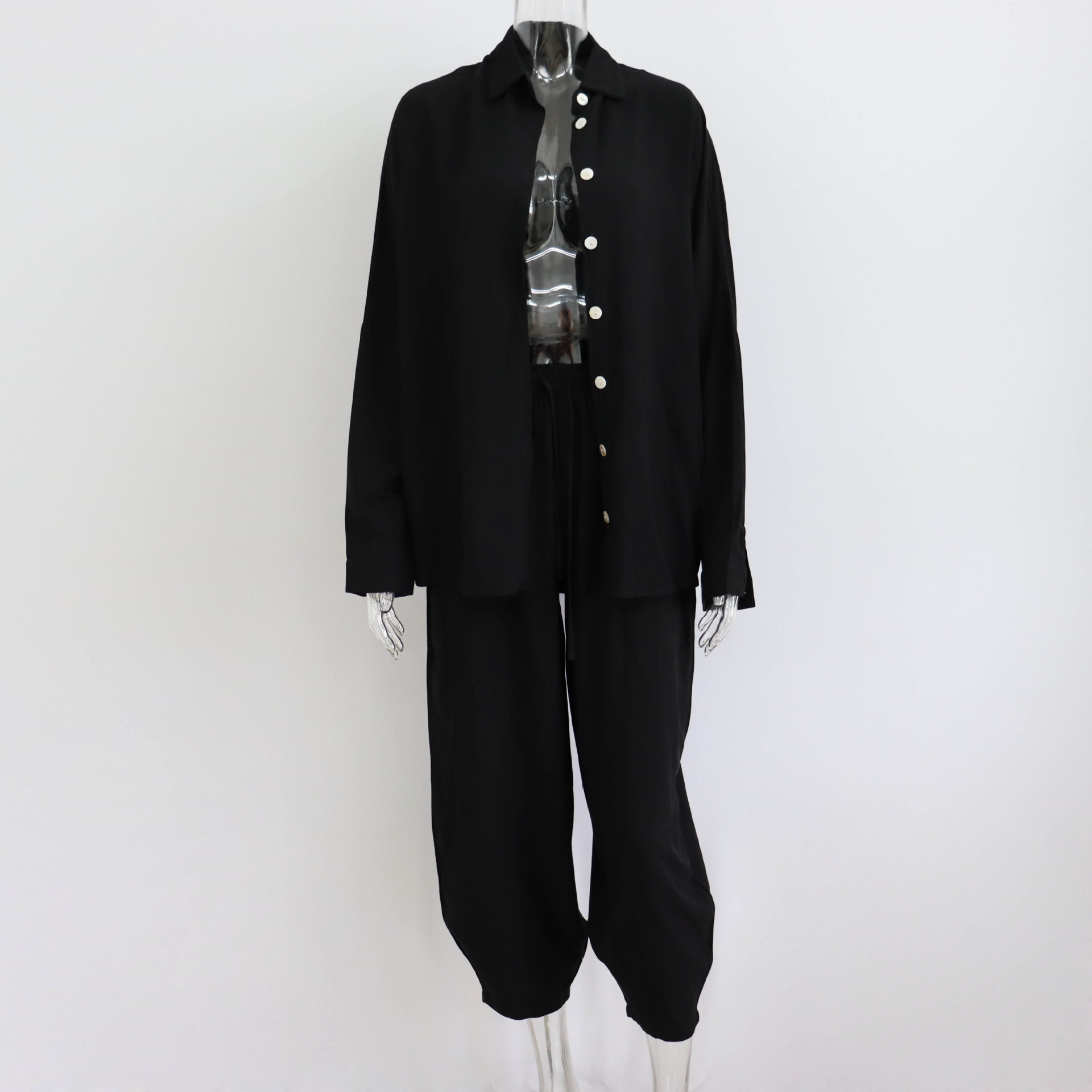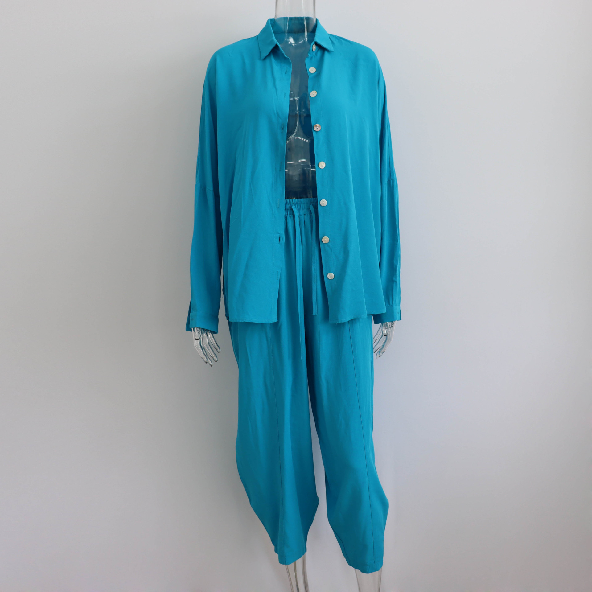 New Europe And America Cross Border Casual Suit Solid Color Polo Collar Long Sleeve Shirt Top Harem Pants Two-piece Set