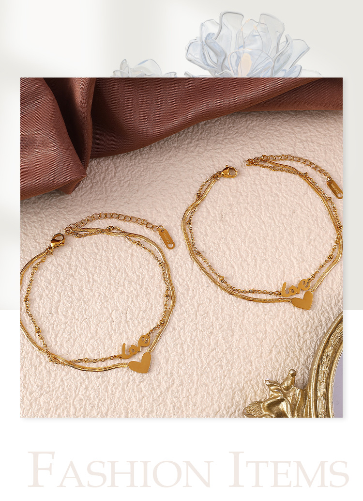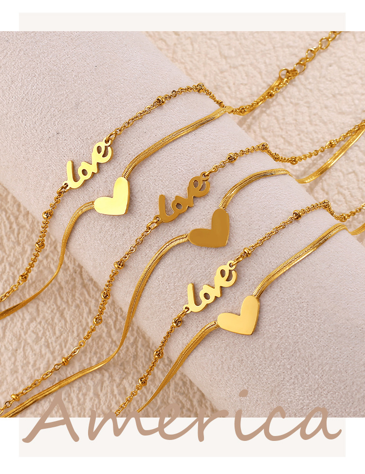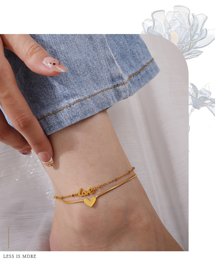 New European & American Fashion Double Layer Heart Love Pendant Anklet For Women, INS Minimalist Style, Trendy Anklet