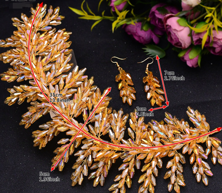 Color: Gold headdress, a set of gold headdress + earrings, a set of silver headdress, a set of silver headdress + earrings