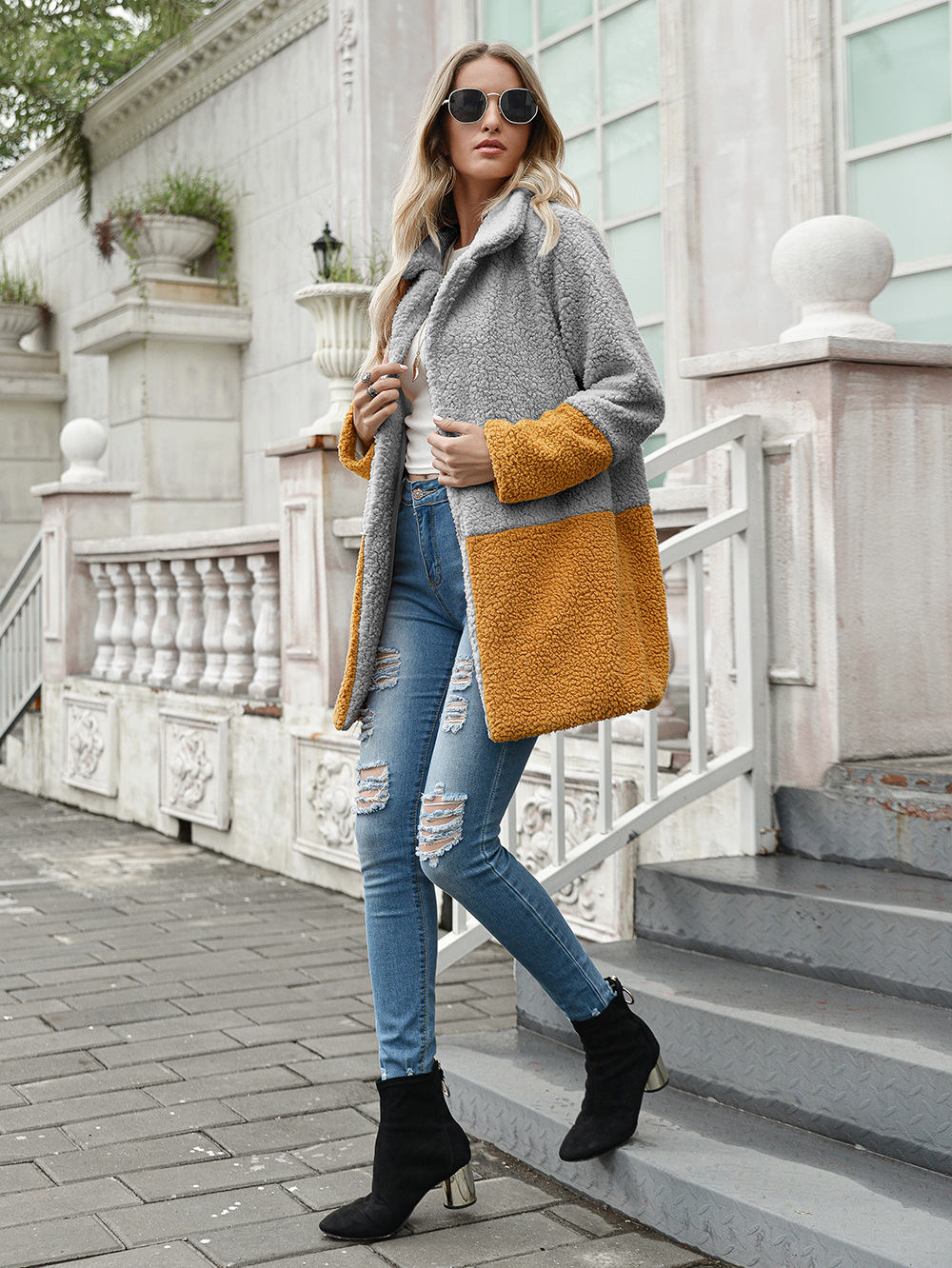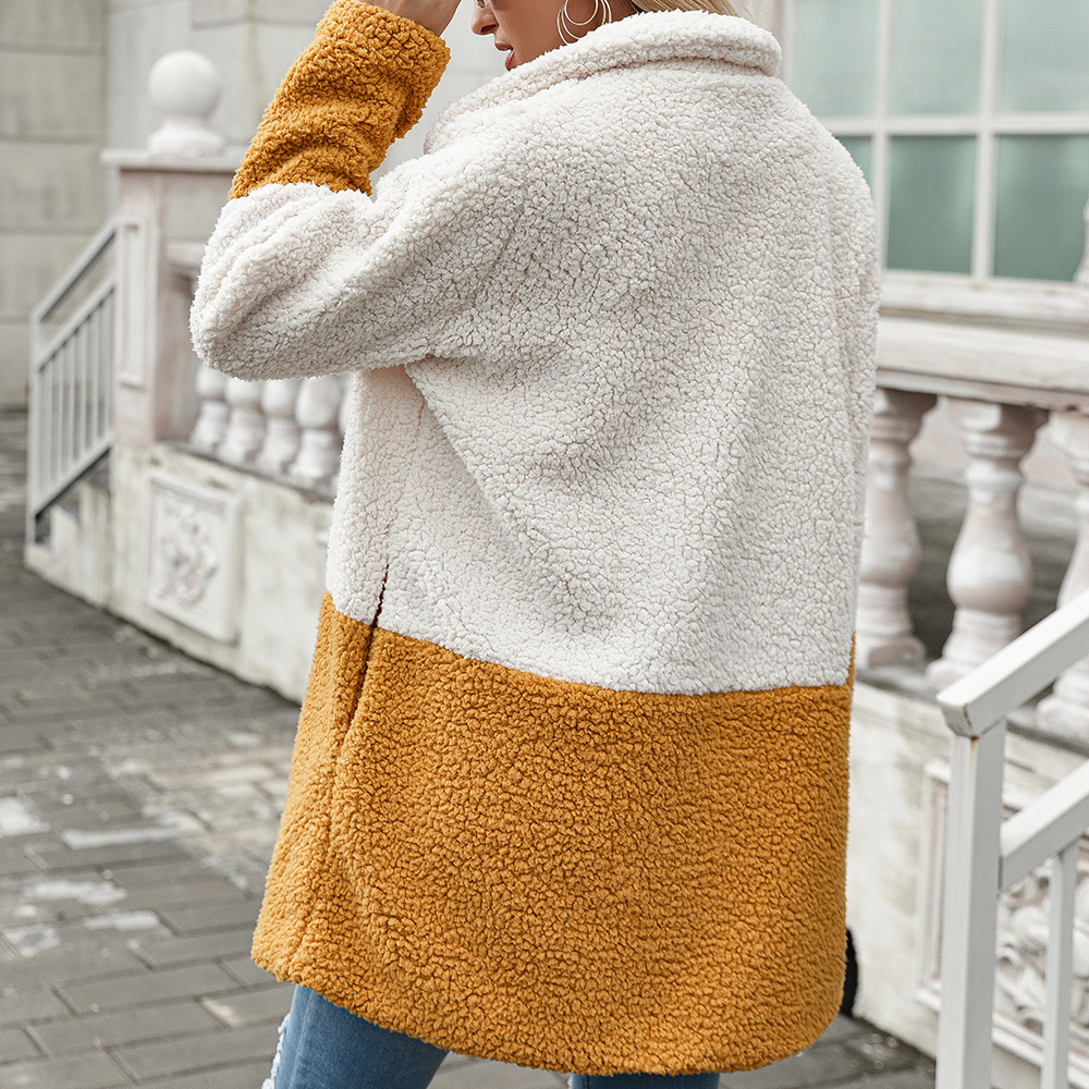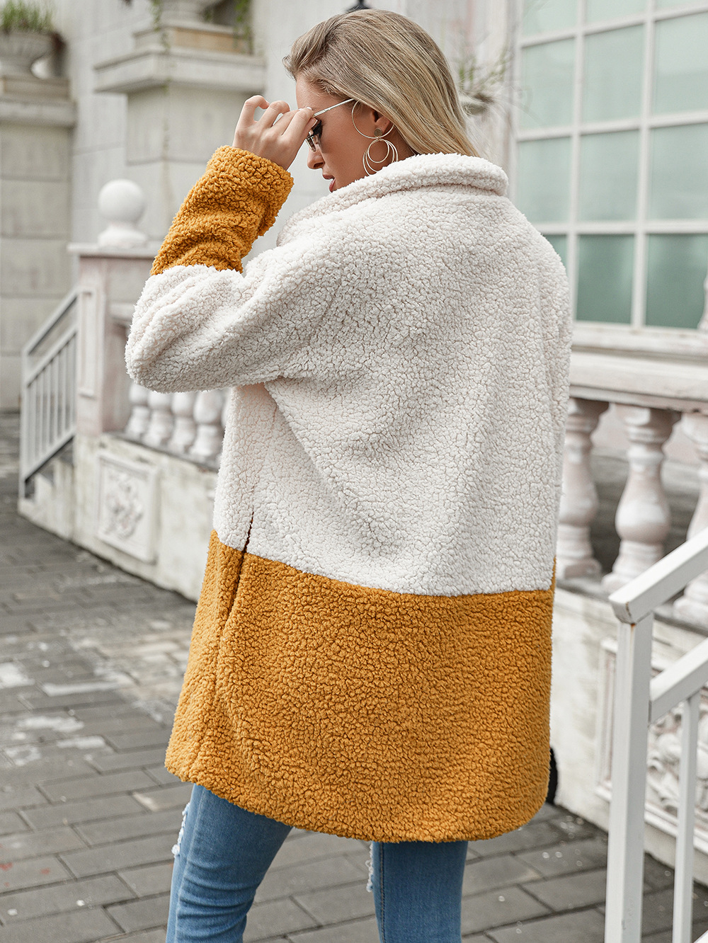 New European And American Mid-length Lapel Wool Cardigan Bubble Fleece Jacket