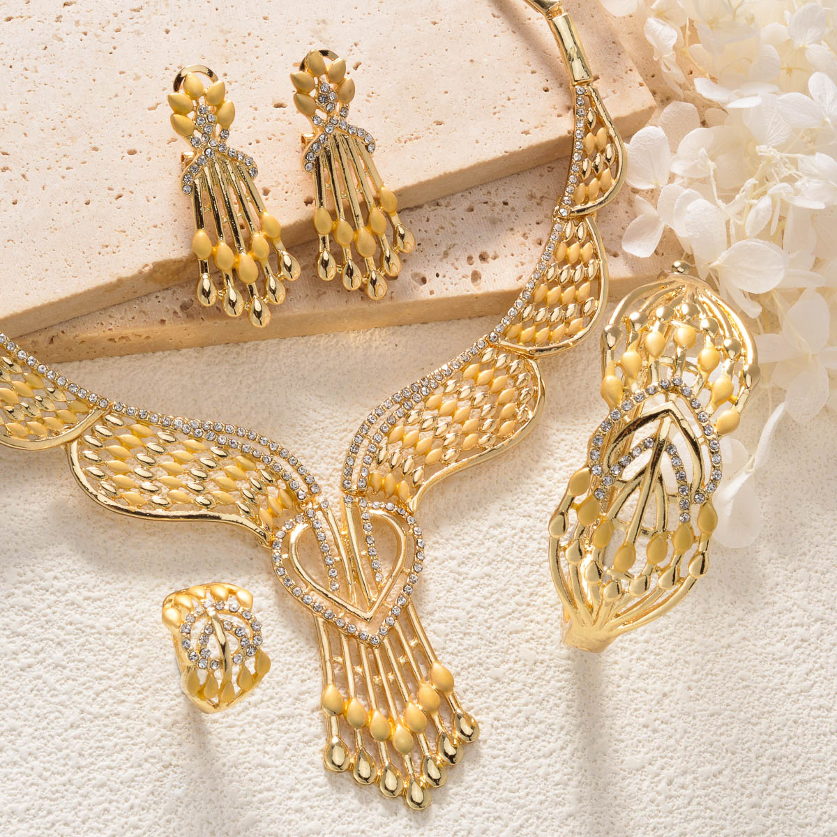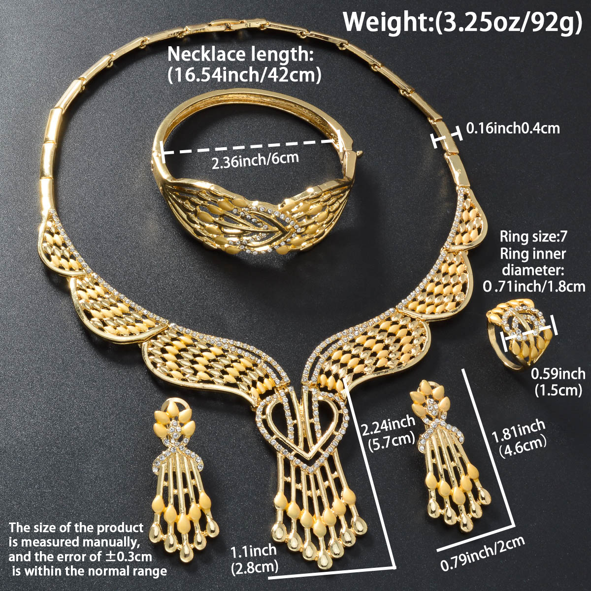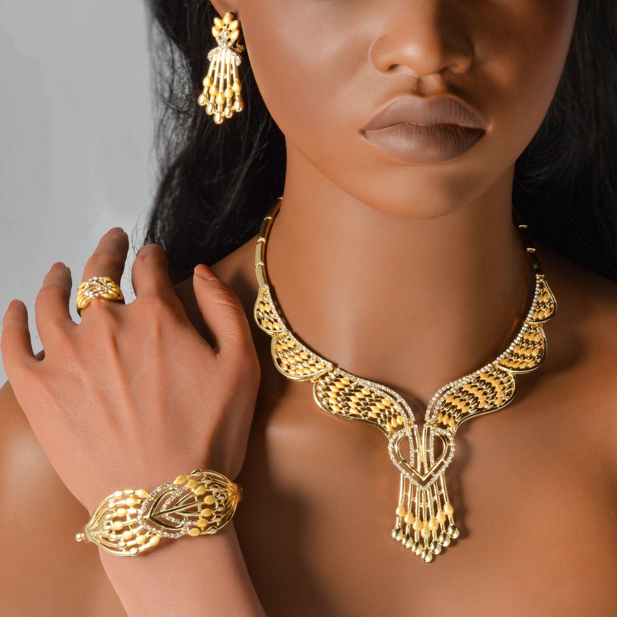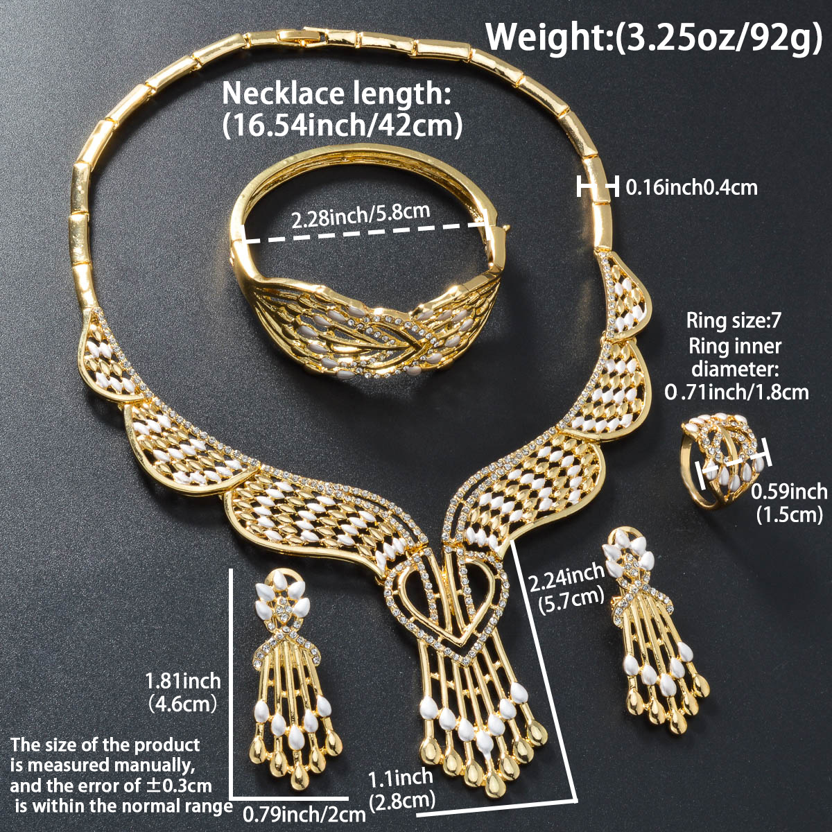 Necklace * 1+Bracelet * 1+Ring * 1+Earrings * 1 Pair