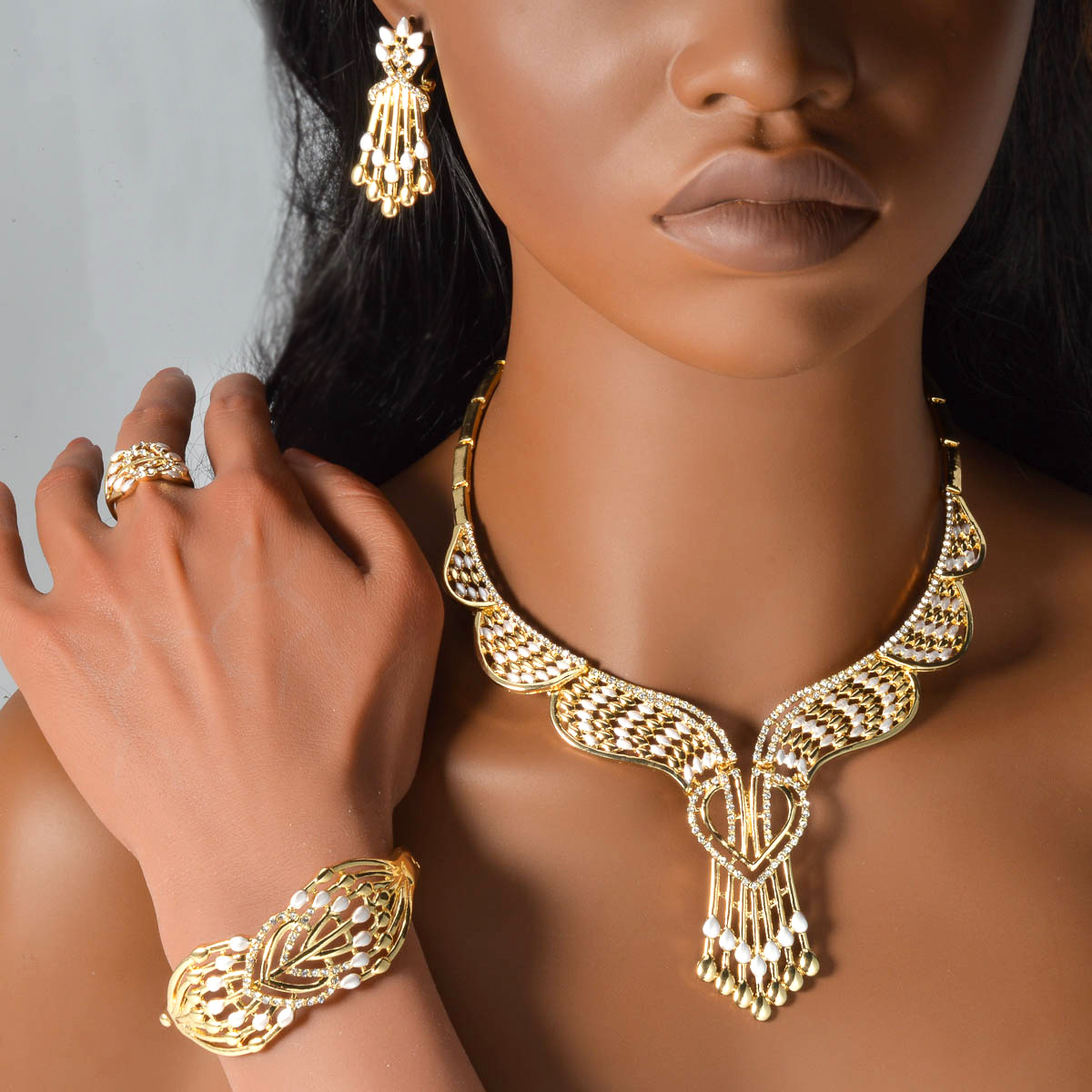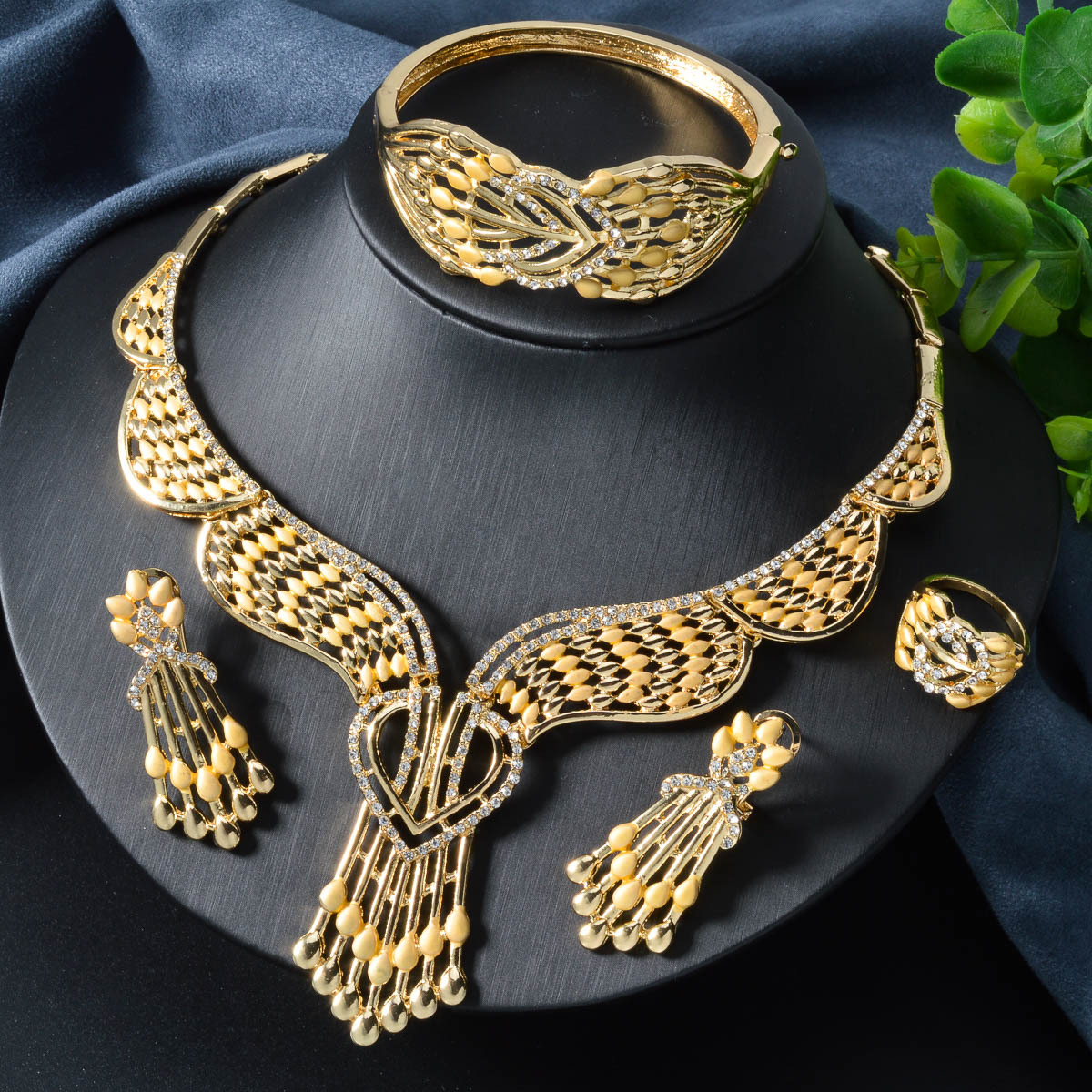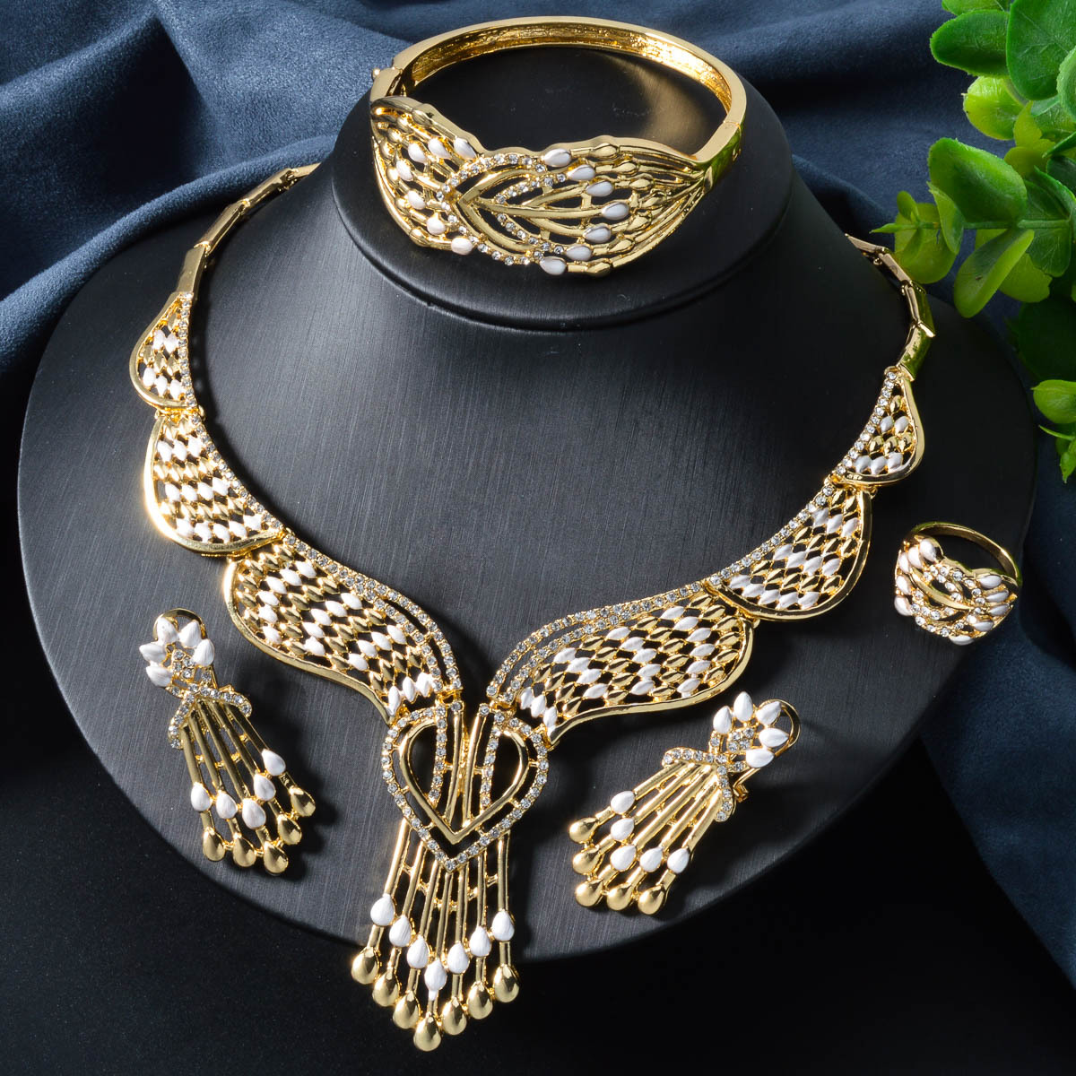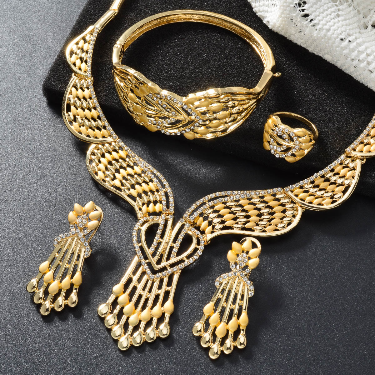 Necklace * 1+Bracelet * 1+Ring * 1+Earrings * 1 Pair