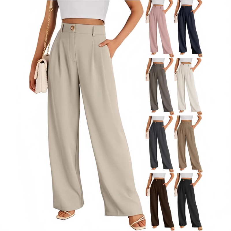 New European And American Style Pocket Dress Pants Wide-leg Formal Trousers